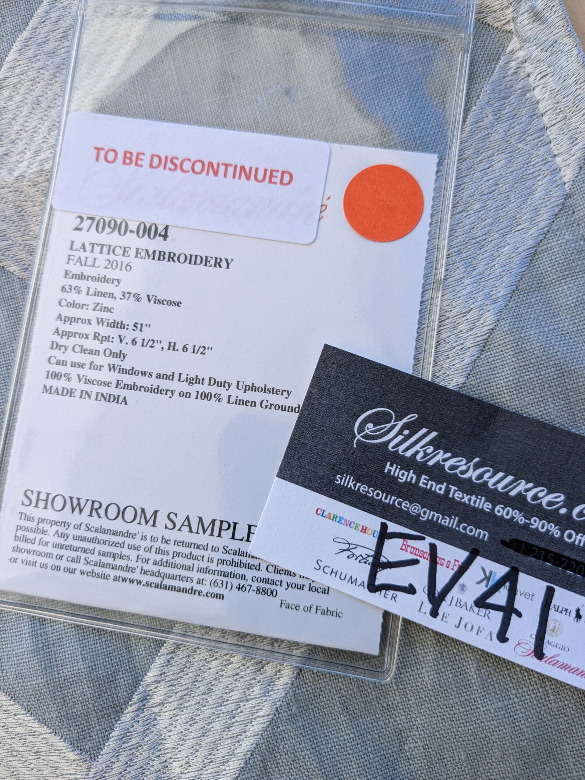 5 EV41 1.2yd x 51"w Scalamandre Lattice Embroidery Zinc Gray Linen Viscose Diamond Geometry