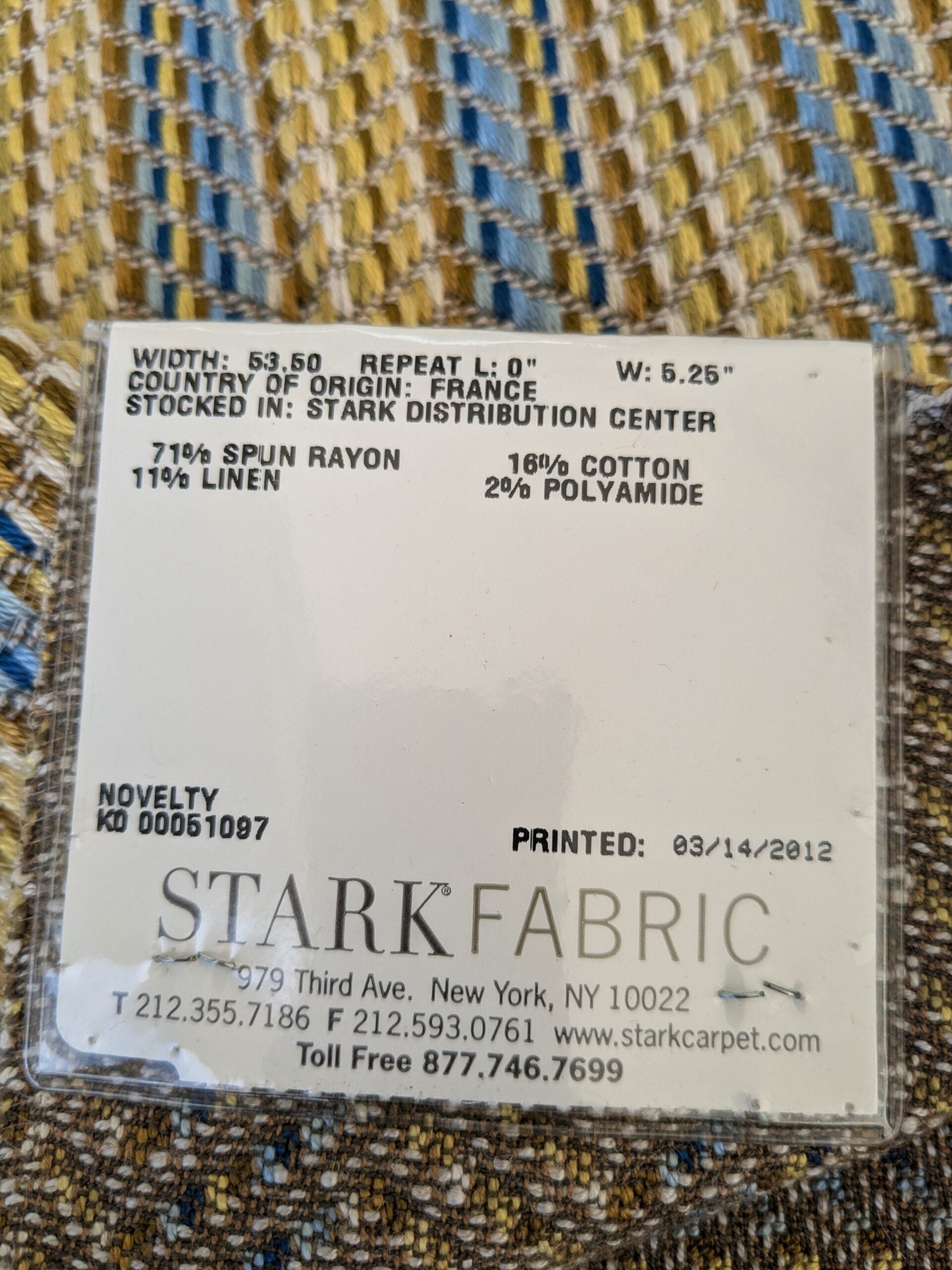 Fiber, repeat, width, weight, country of origin, WHOLESALE price/yard: