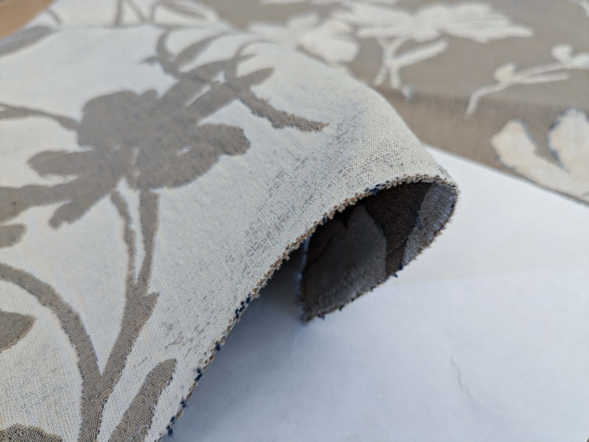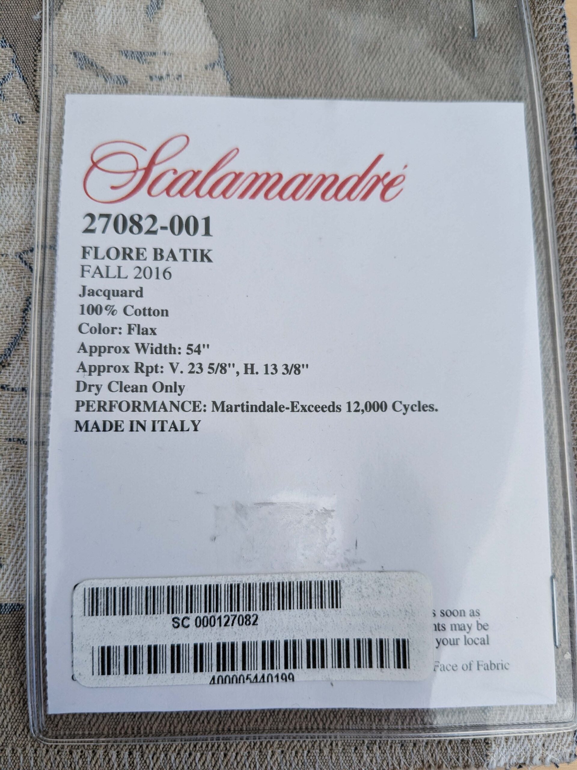 6 EV50 25" x 26" Scalamandre Square Flore Batik Poly Flax Brown Cream Floral White Magnolia Cotton Damask MSRP 472/y