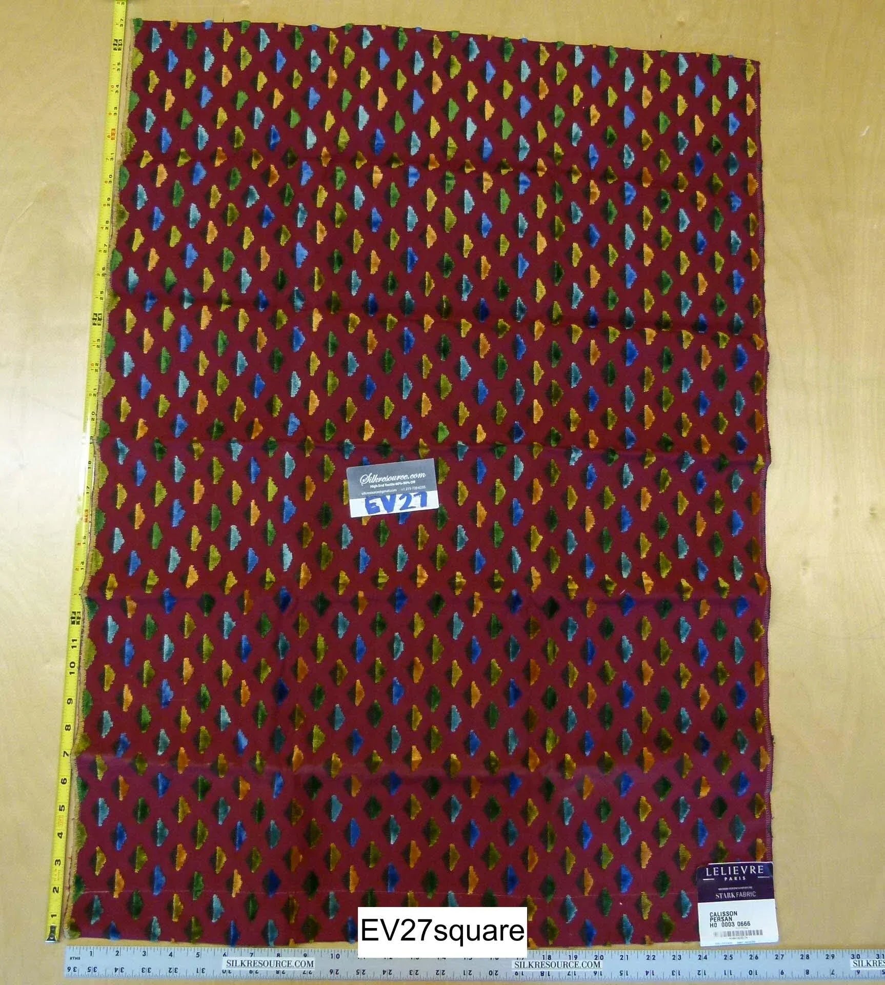 Scalamandre LELIEVRE Paris Calisson Persan Cut Velvet Diamond Red - Square 37 inches x 27 inches