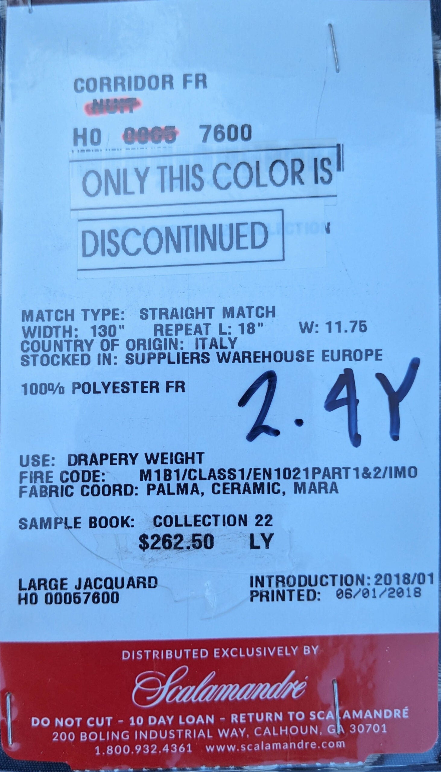 Fiber, repeat, width, weight, country of origin, WHOLESALE price/yard:
