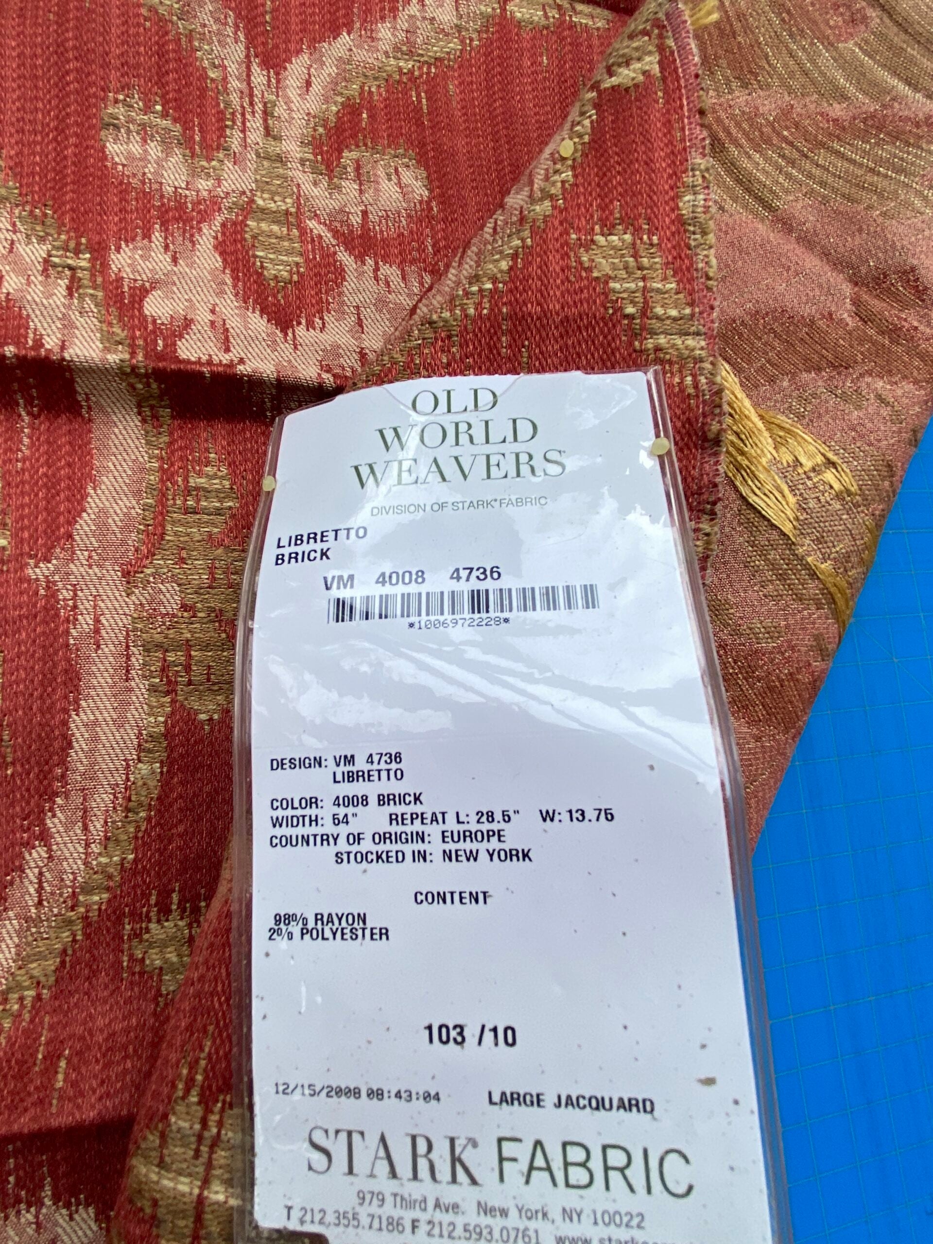 Fiber, repeat, width, weight, country of origin, WHOLESALE price/yard: