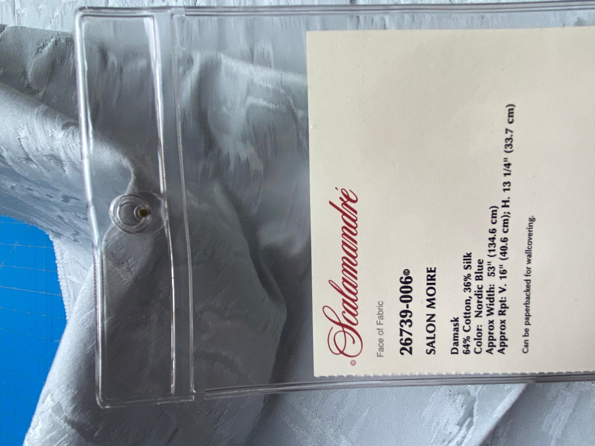 51 Berkbox99 Square Jacquard by Scalamandre Salon Moire Nordic Blue Damask Shell USD 442/yd