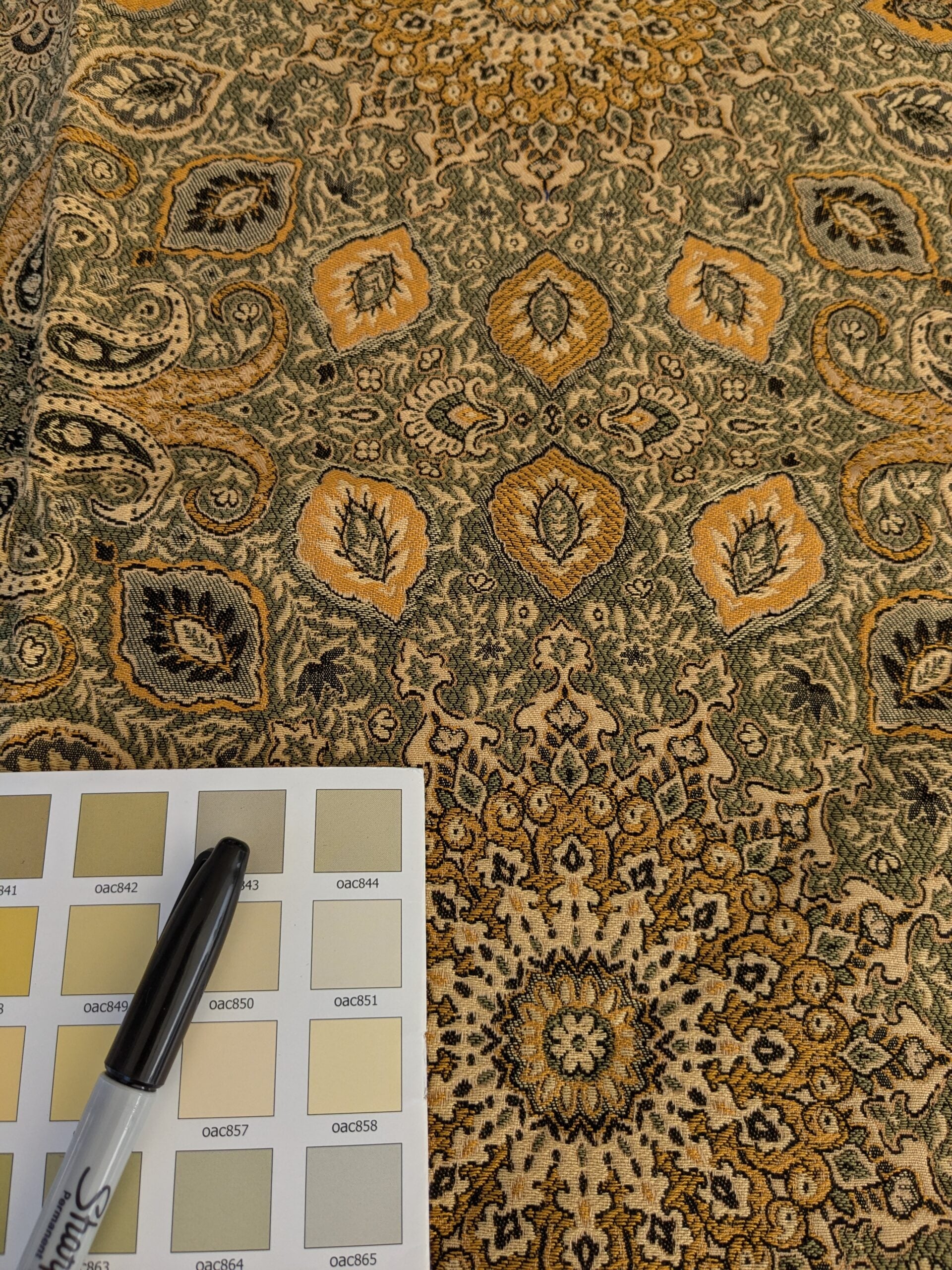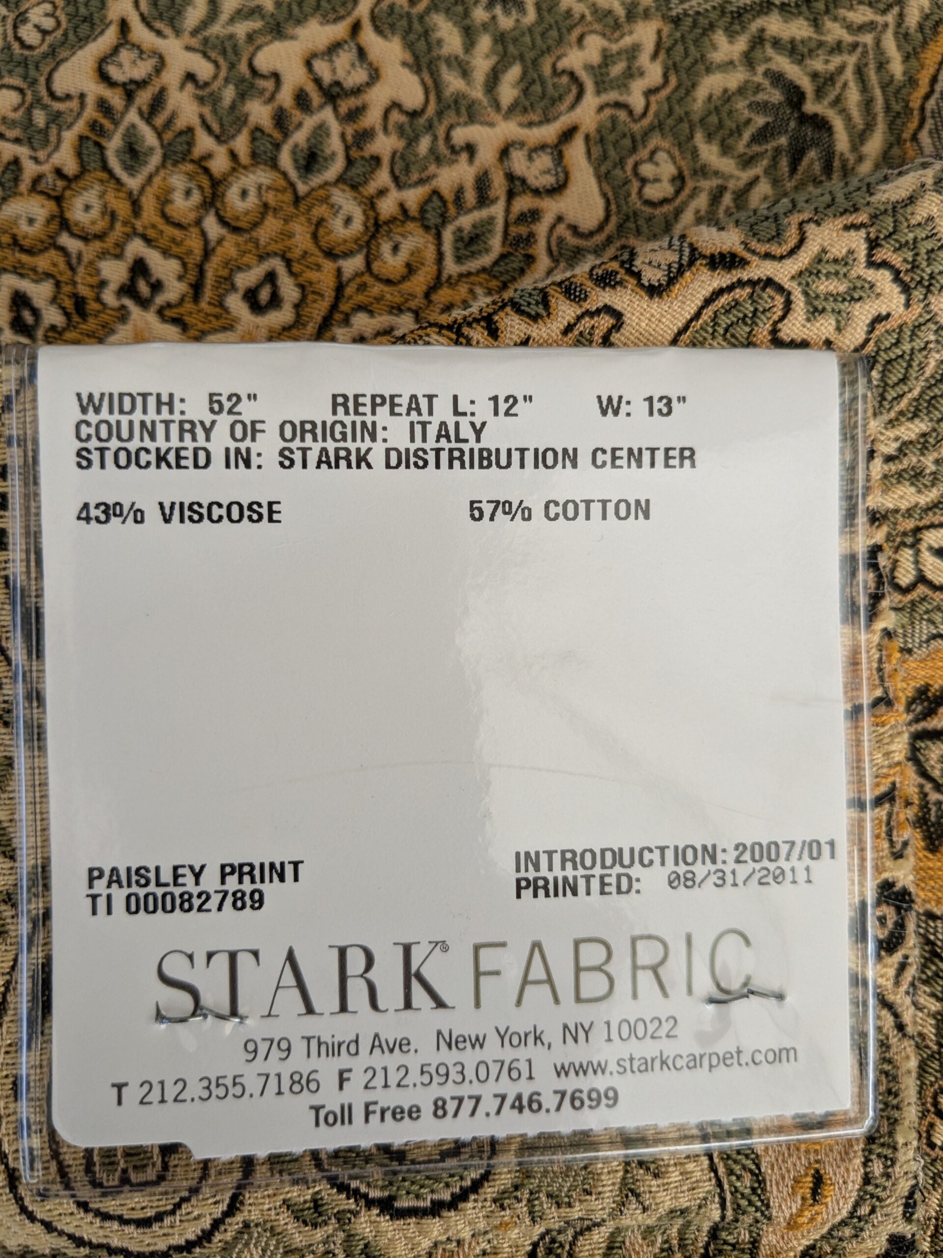53 EV47 Square Scalamandre Grey Watkins Bessarabia Reseda Green Gold Arabic Brocade Paisley MSRP USD 264/Y 25"x 25"