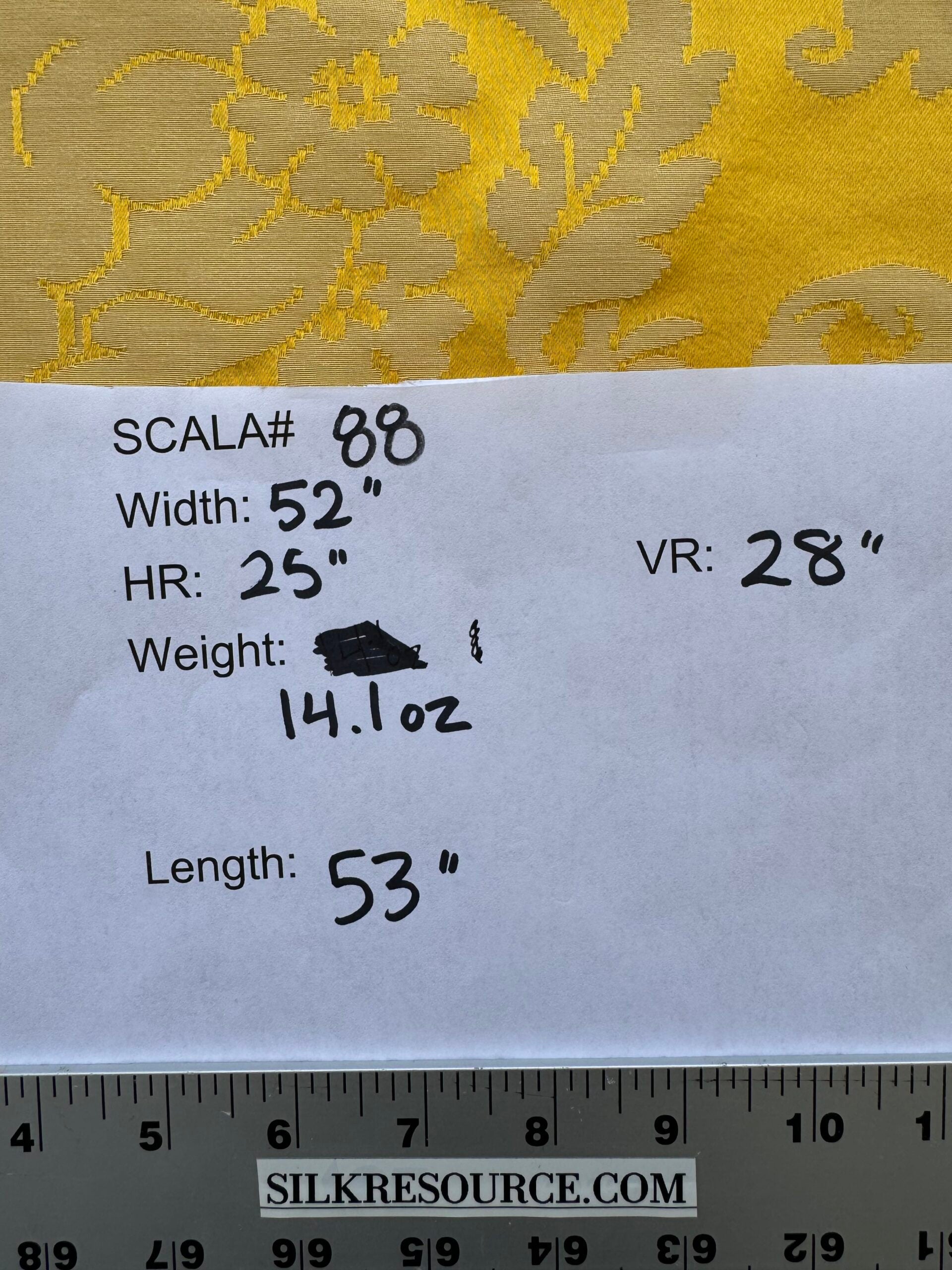 Weight: medium heavy weight silk damask. About 0.5lb/yard. Soft, yet durable enough for upholstery purpose