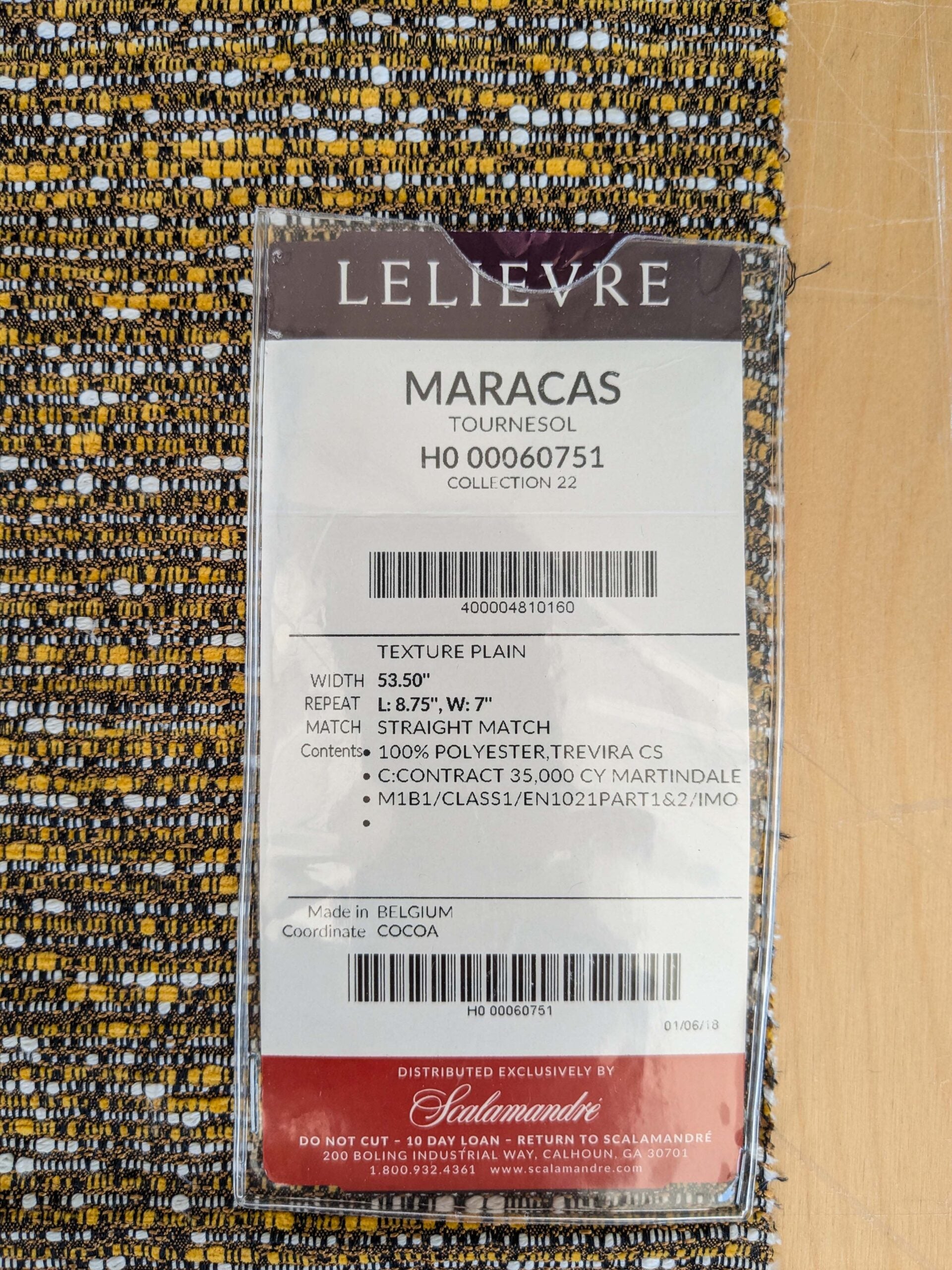 54 EV37 25" x 26" Lelievre Paris Maracas Tournesol Yellow Dark Gray Solid Texture Polyester