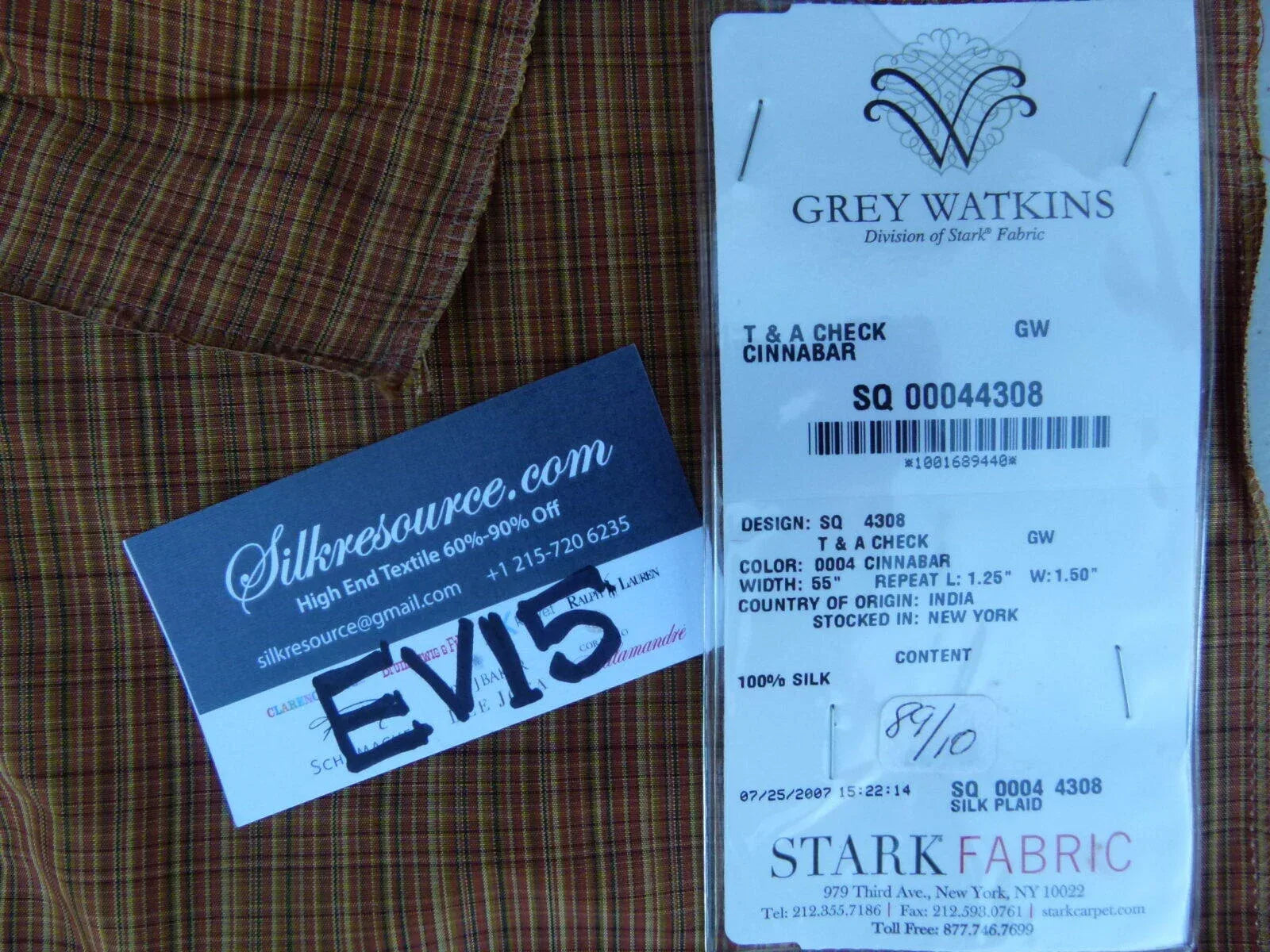 55 Ev15 Scalamandre Showroom Sample Square T & A Check Cinnabar Brown Plaid Silk