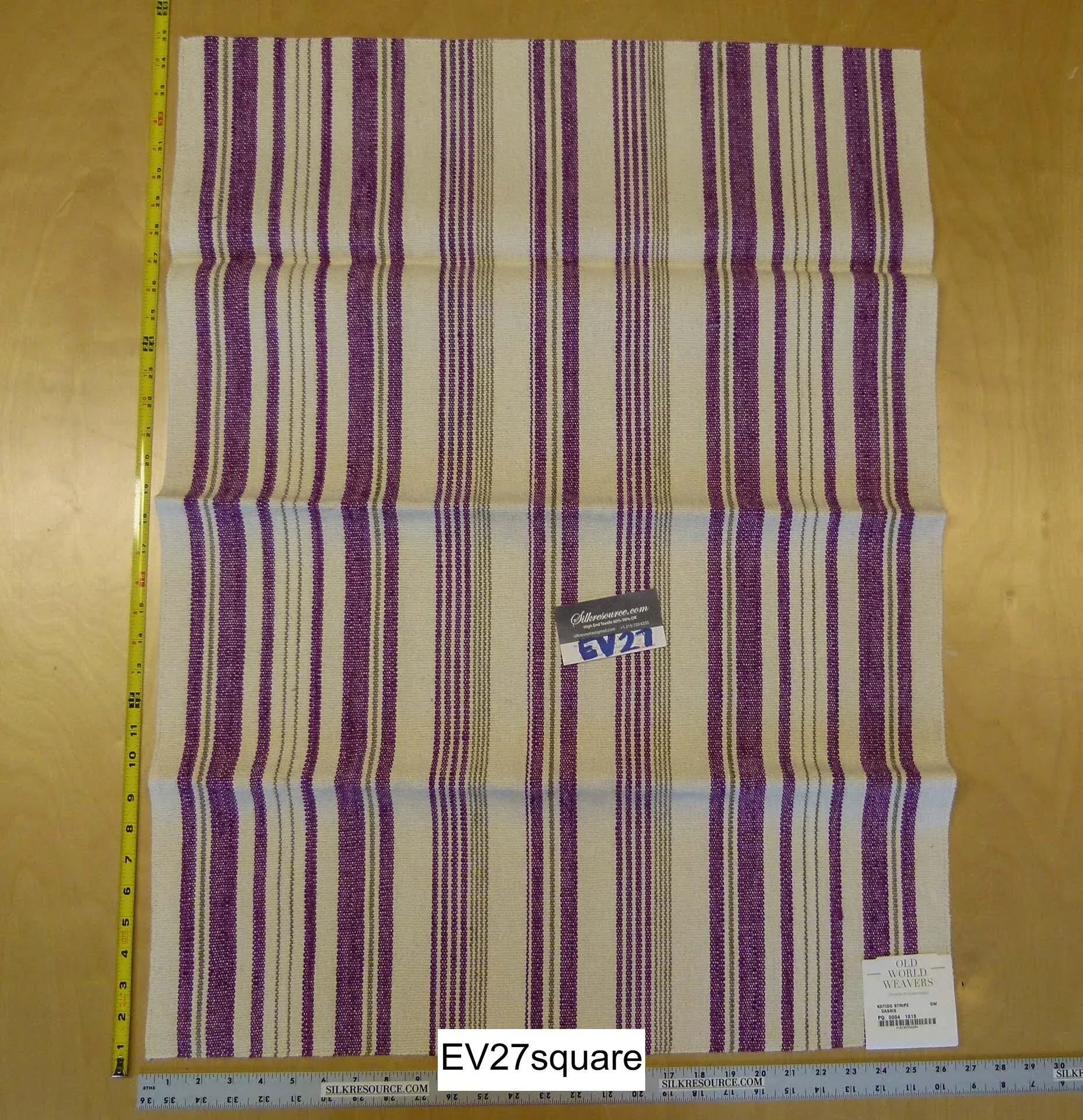 Scalamandre Grey Watkins Kotido Stripe Classic Purple - 26 inchesx35 inches Square