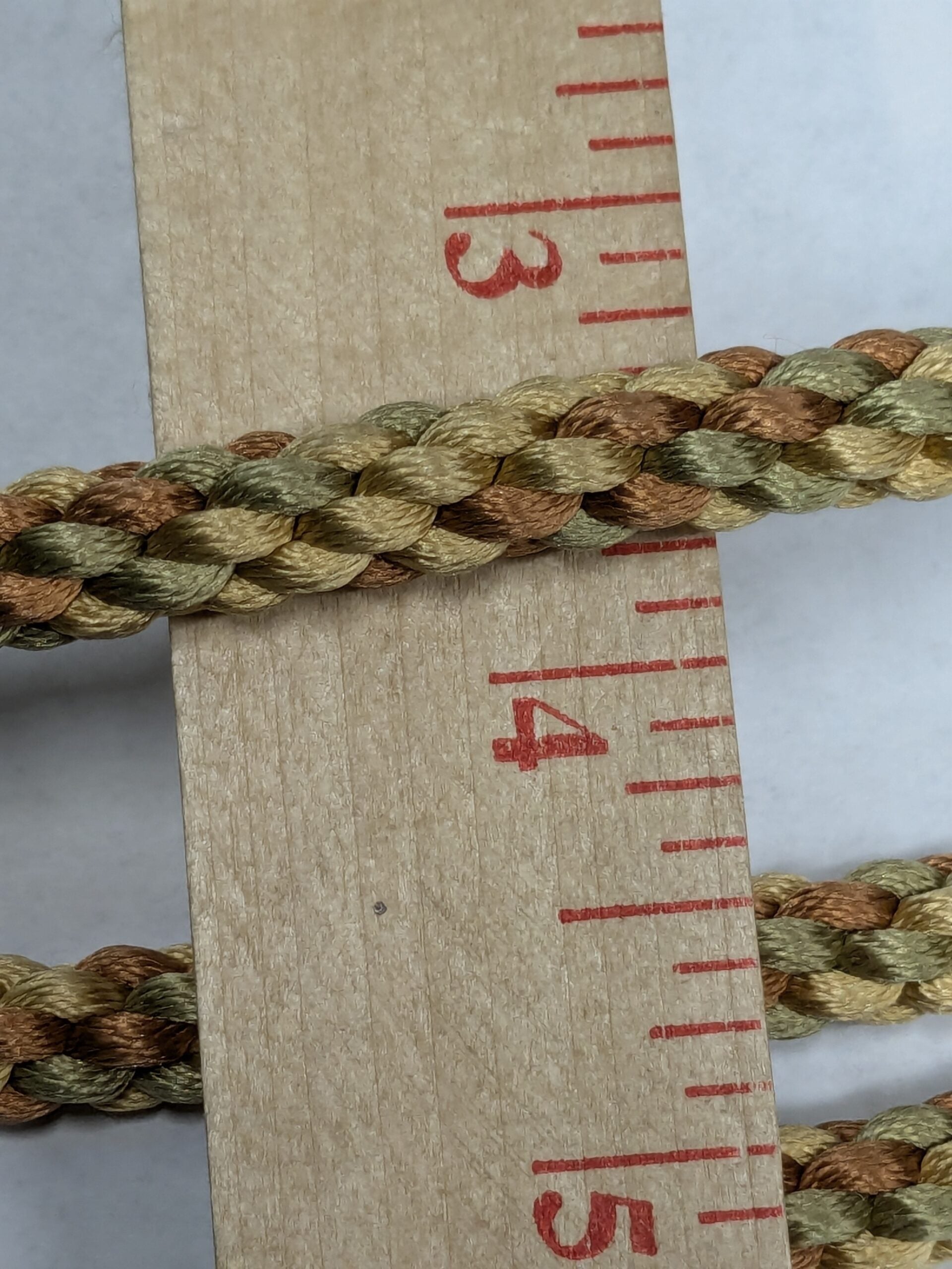 55 inches Scalamandre 100% Silk Rope Trim C42-59 (Trim Box B) Woven Green Brown Yellow