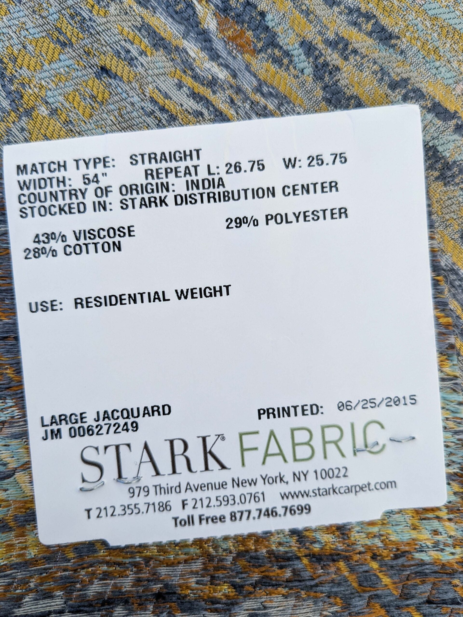 Fiber, repeat, width, weight, country of origin, WHOLESALE price/yard: