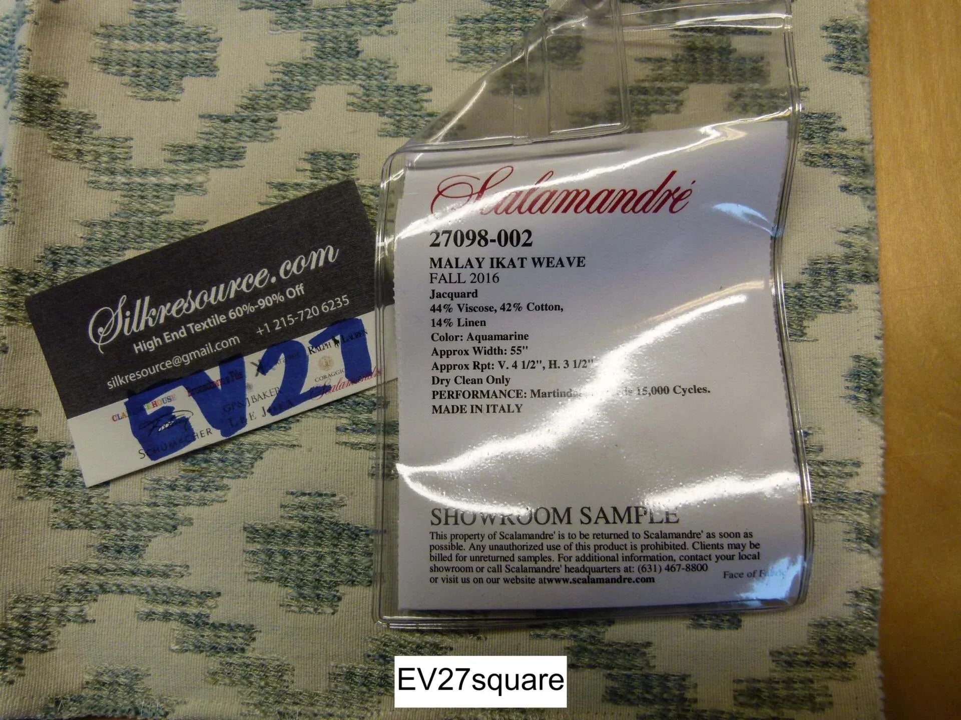 Scalamandre Malay Ikat Weave Aquamarine Jacquard Diamond Ogee Green - SquareEV27square-58