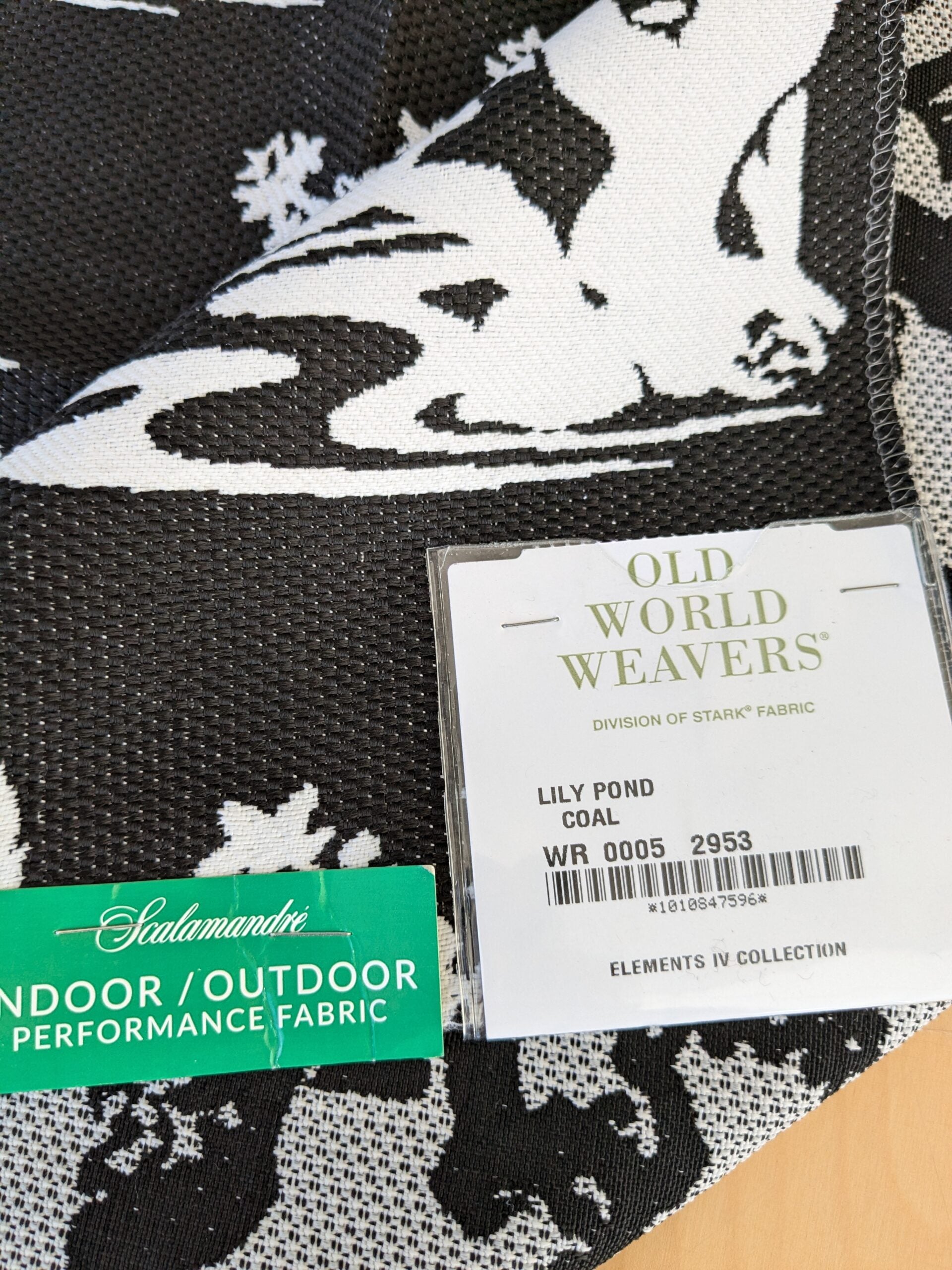59 EV47 Square Scalamandre LILY POND COAL Black and White Outdoors Bird/ Animal Chinoiserie