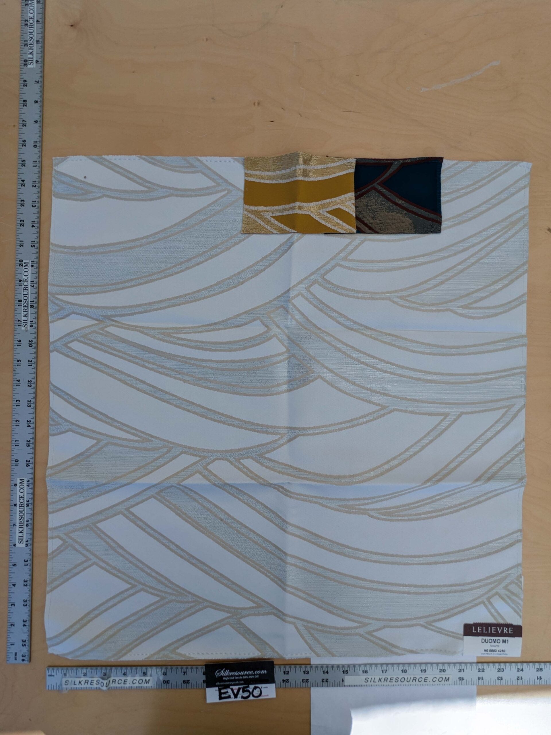 59 EV50 25" x 24" Scalamandre Lelievre Paris Duomo M1 Nacre White Jacquard Abstract Polyester MSRP USD554/y