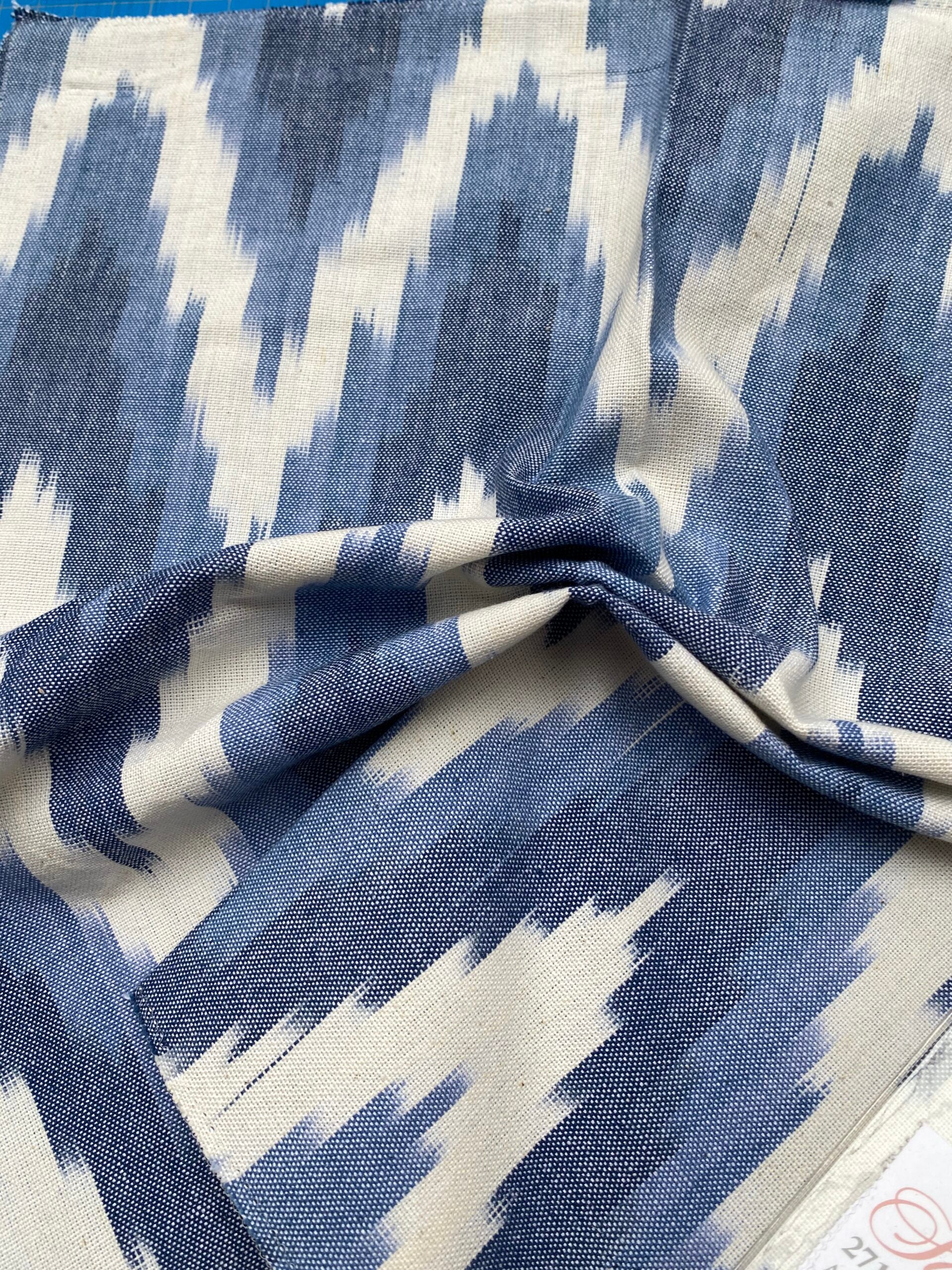 60 Berkbox77 Square Printed Fabrics by Scalamandre Adras Ikat Weave Lapis Blue White Cotton Chevron MSRP USD 150/y