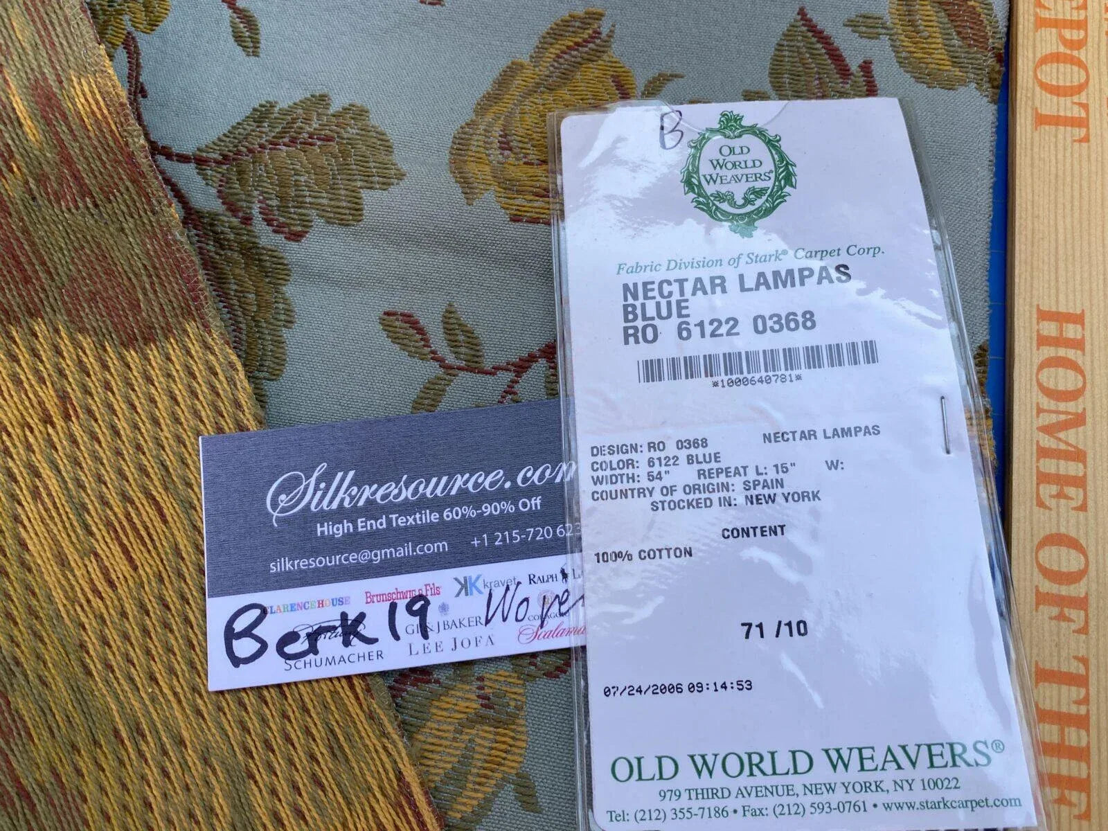 5b Berkbox19 Scalamandre Woven Nectar Lampas Blue Orange Rose 100% Cotton