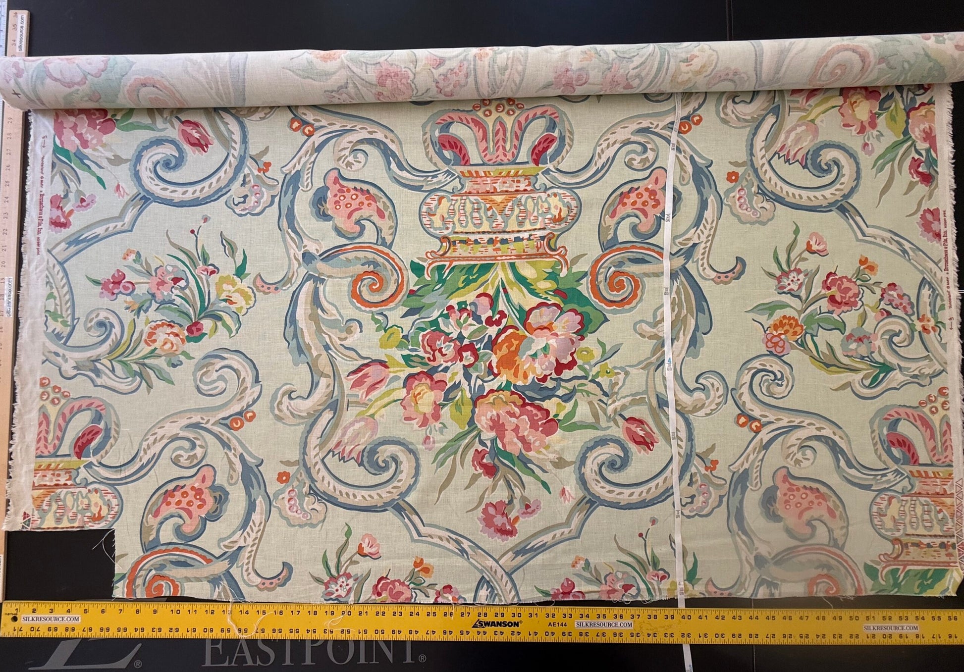 4.8Y Brunschwig & Fils Sunderland Celedon Artistic Floral Linen/Cotton Historical Print Chintz MSRP$194/y