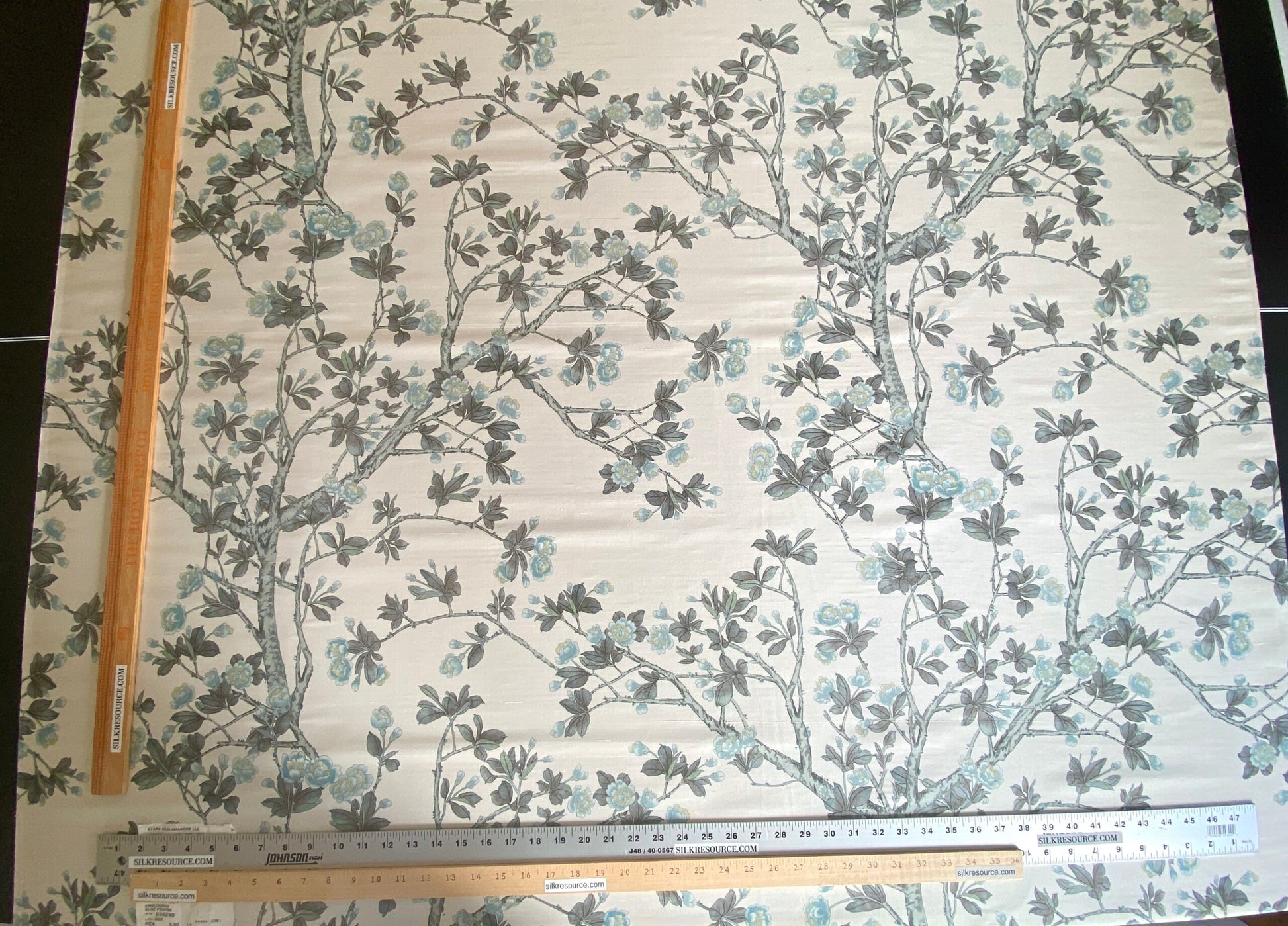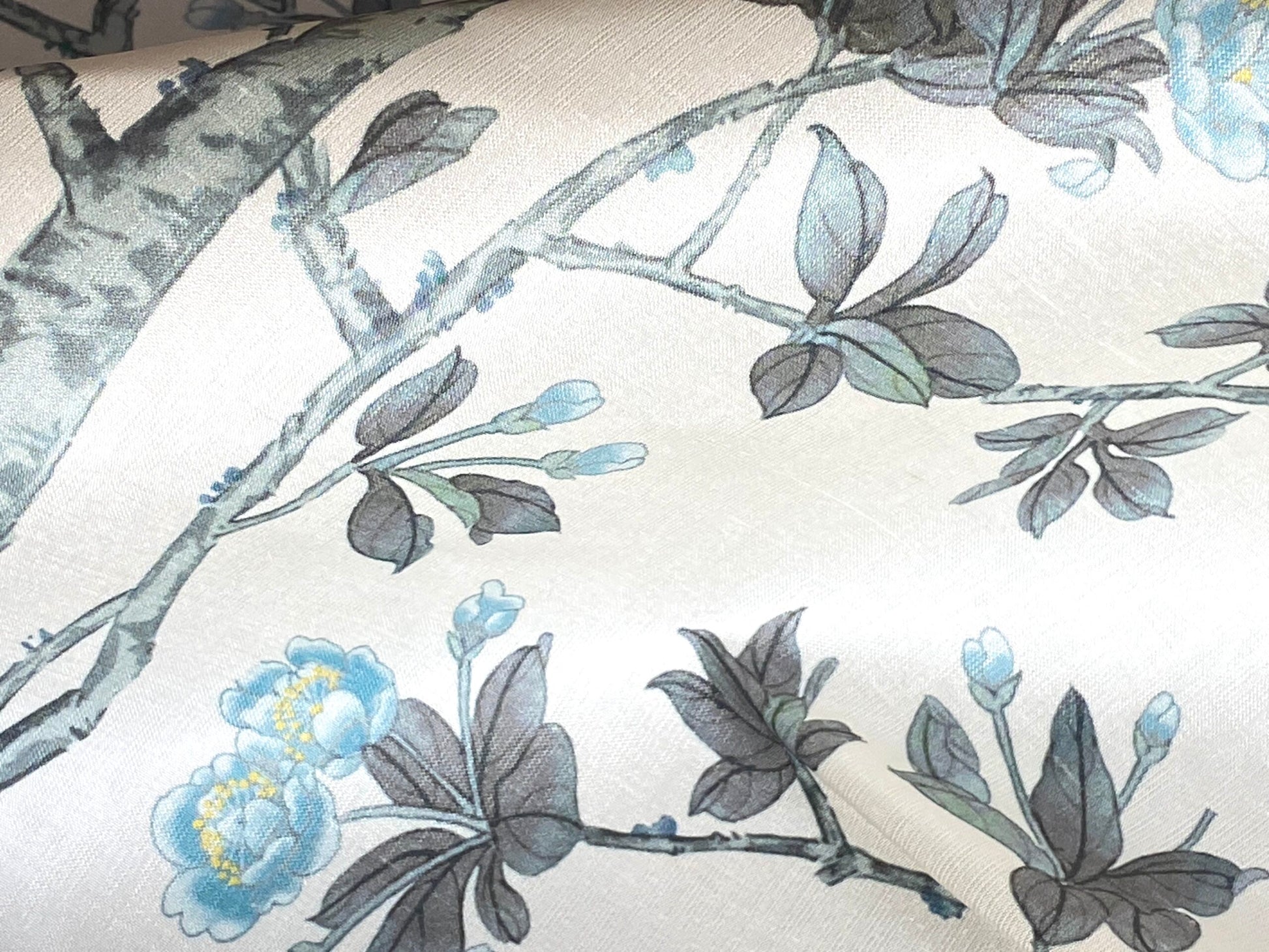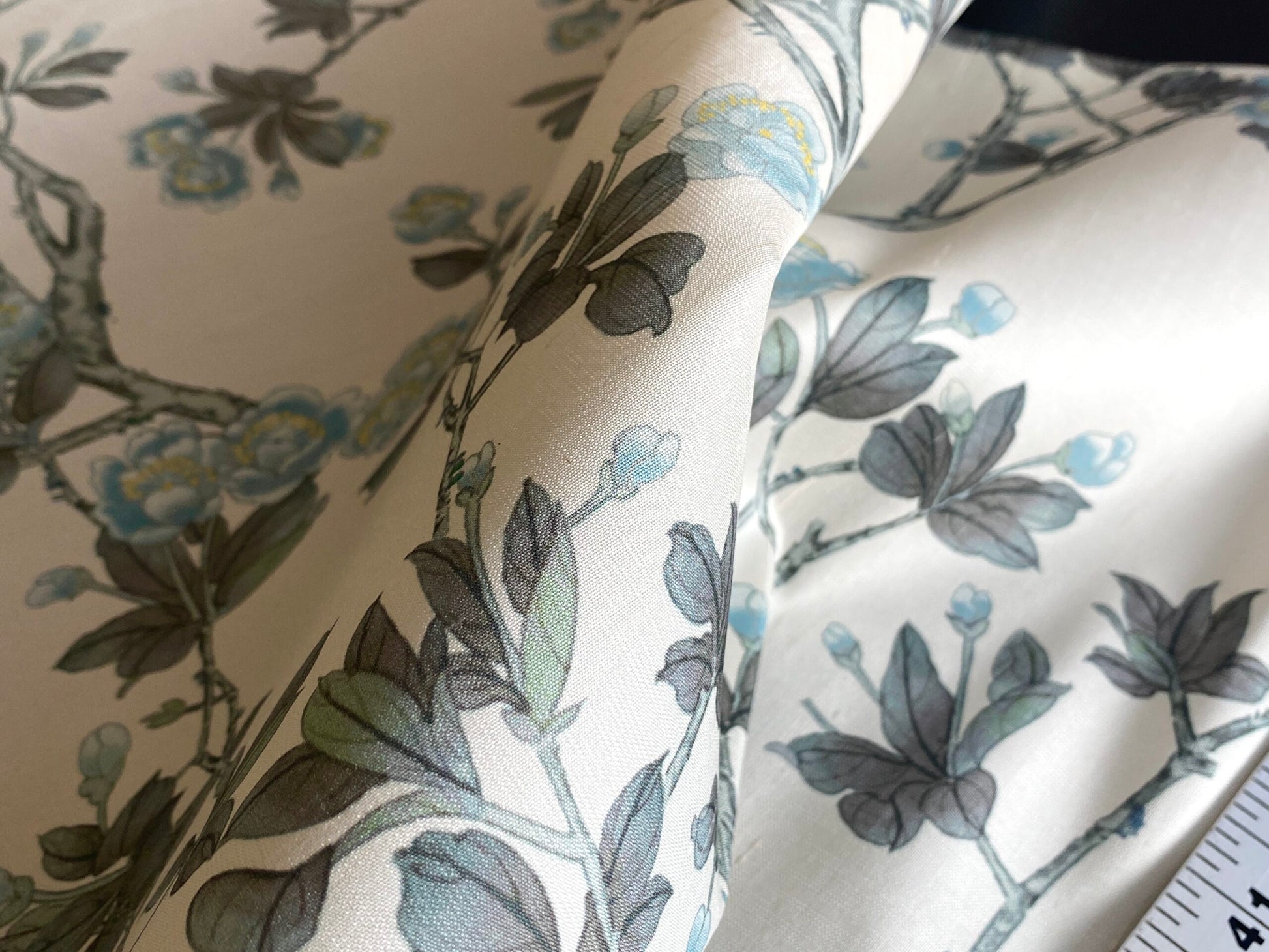By Yd Scalamandre Knollwood Flower Tree Cherry Blossom Chinoiserie Blue Pewter Silk Print MSRP USD 320/Y