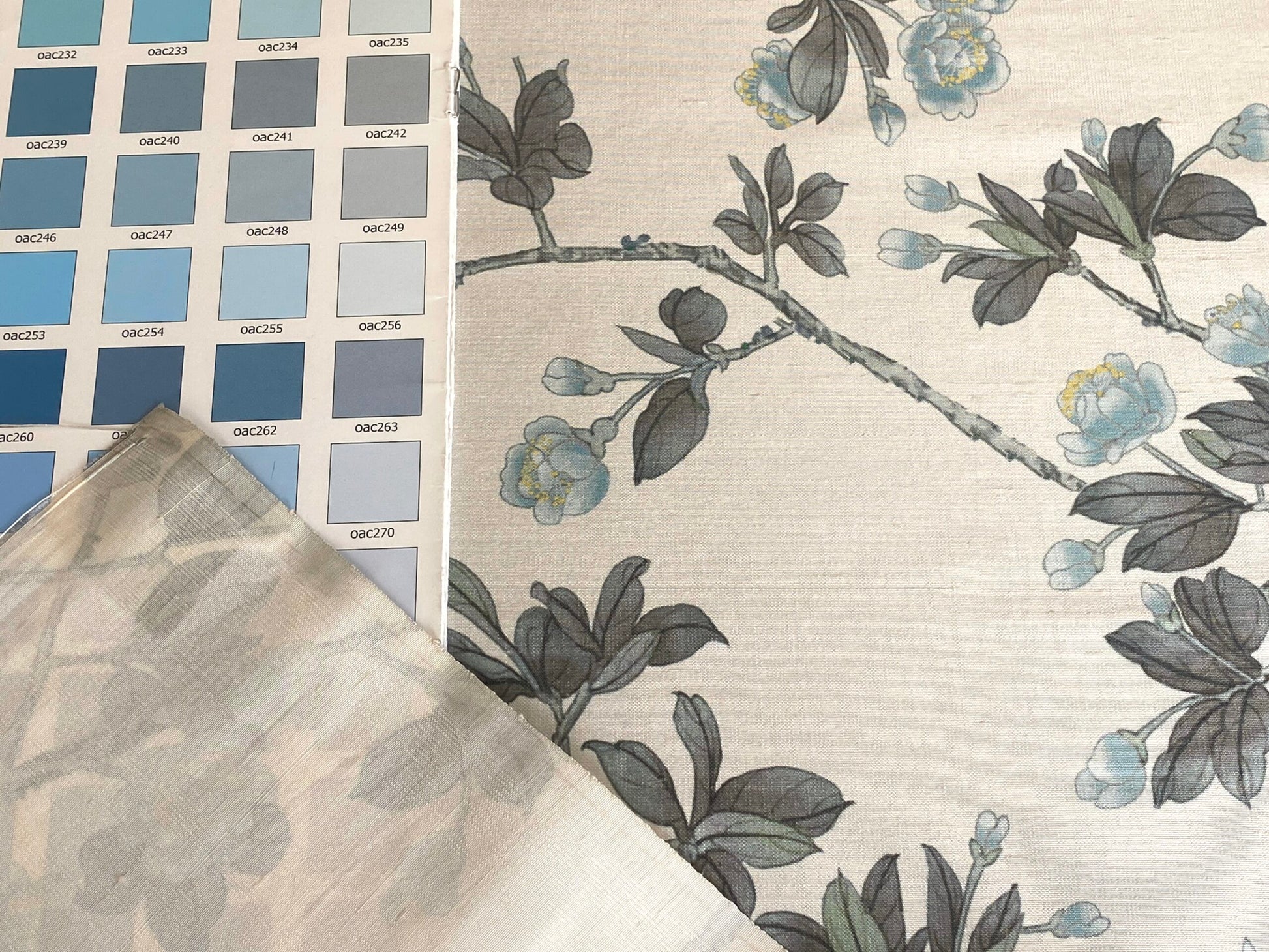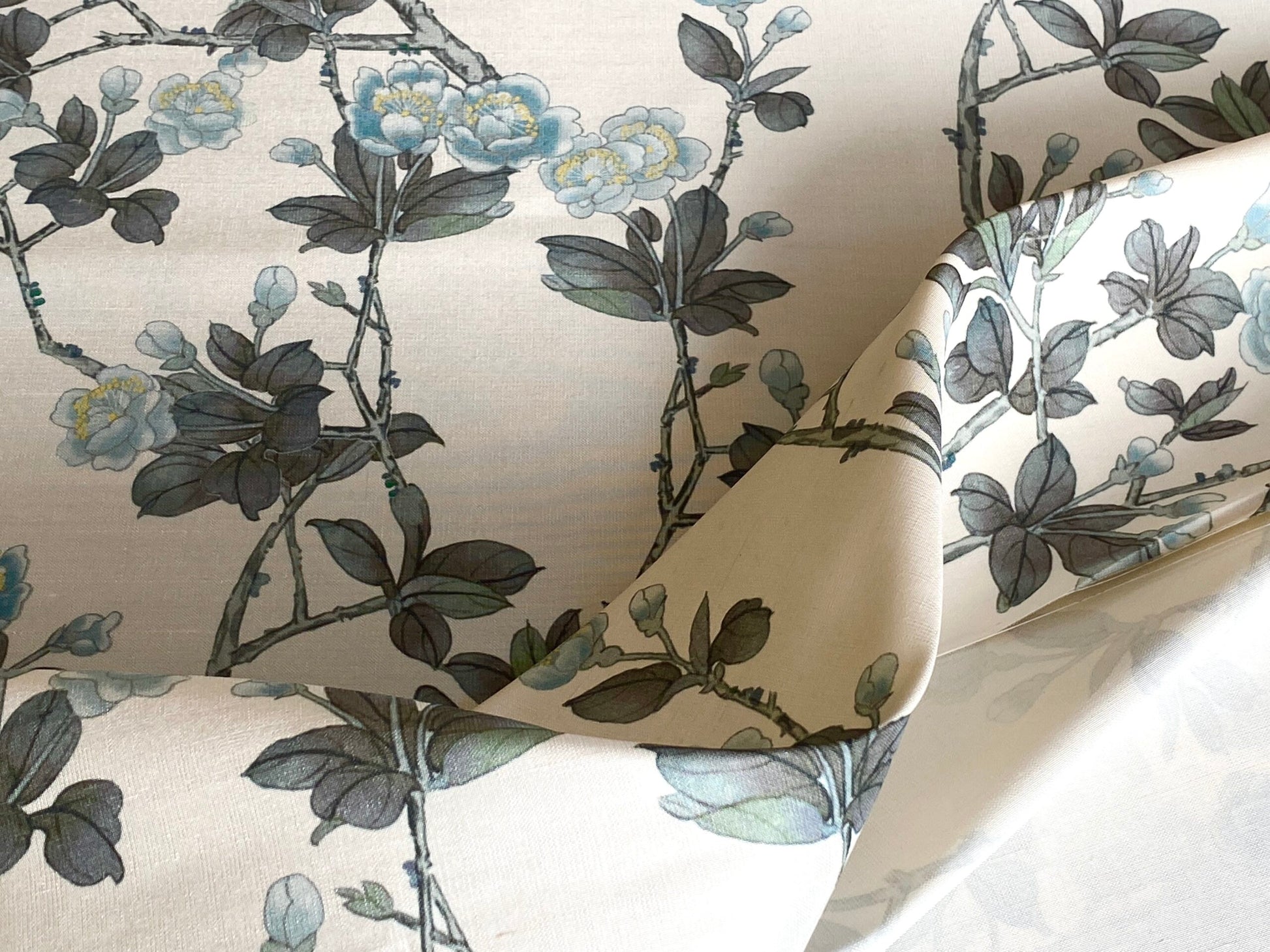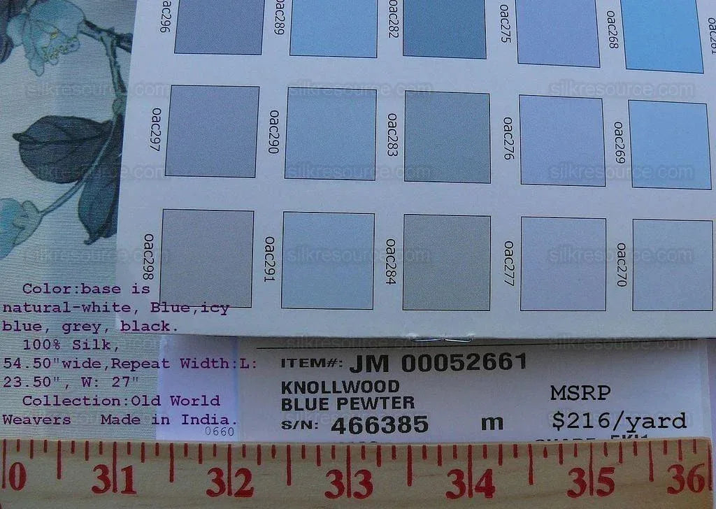 By Yd Scalamandre Knollwood Flower Tree Cherry Blossom Chinoiserie Blue Pewter Silk Print MSRP USD 320/Y