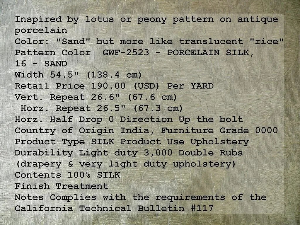By yard Lee Jofa Porcelain Silk Sand White Beige Chinoiserie Lotus Peony MSRP 190/Y
