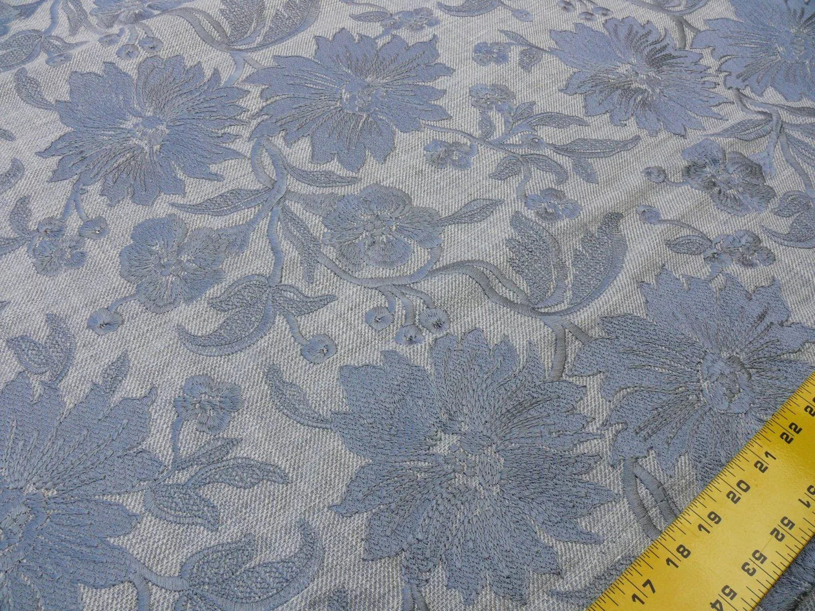 6 Berkbox37 Length Scalamandre Nina Chambray Blue Linen Flower Power Embroidery 2.4y MSRP USD 300+/Y