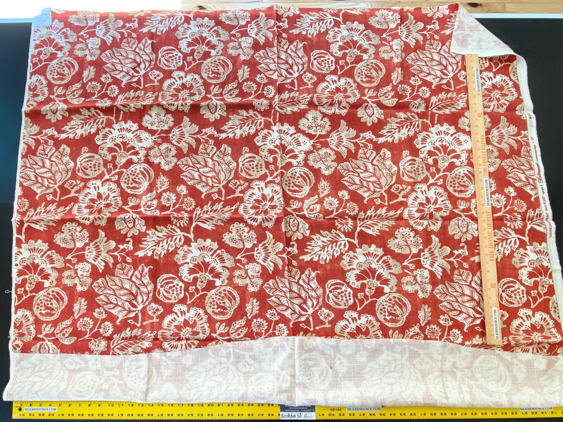 6 Berkbox56 1.5 yard Scalamandre Calais Linen Print Coral Red White