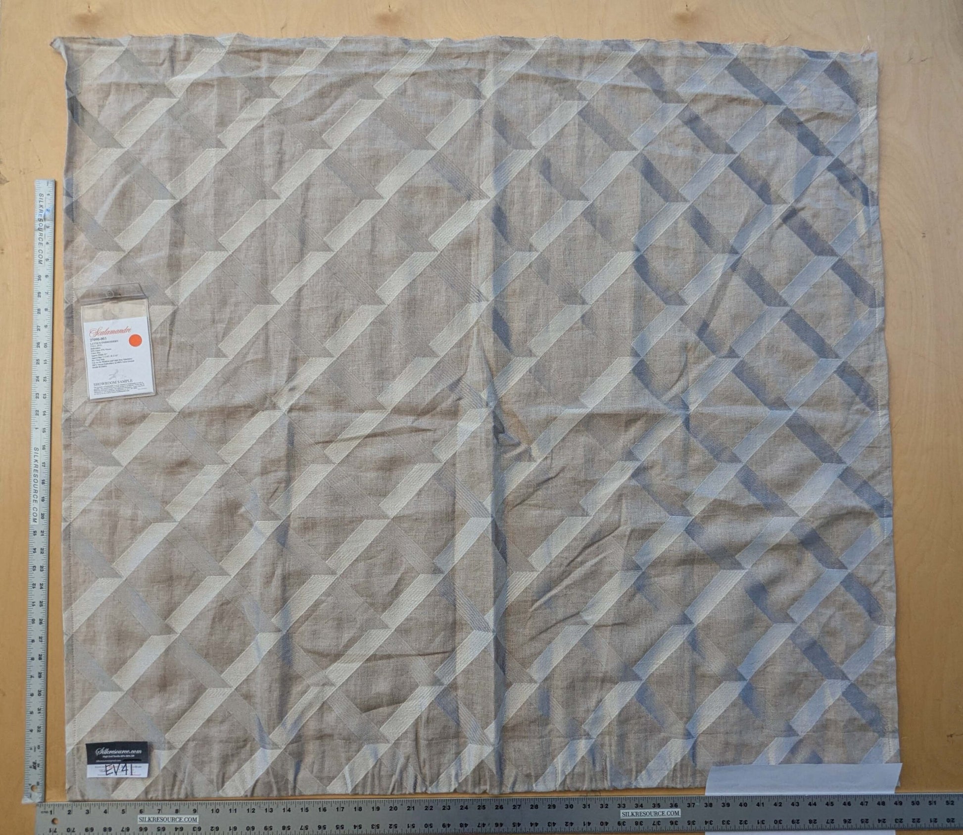 6 EV41 1.2yd x 51" Scalamandre Lattice Embroidery Flax Beige Linen Viscose Diamond Geometry