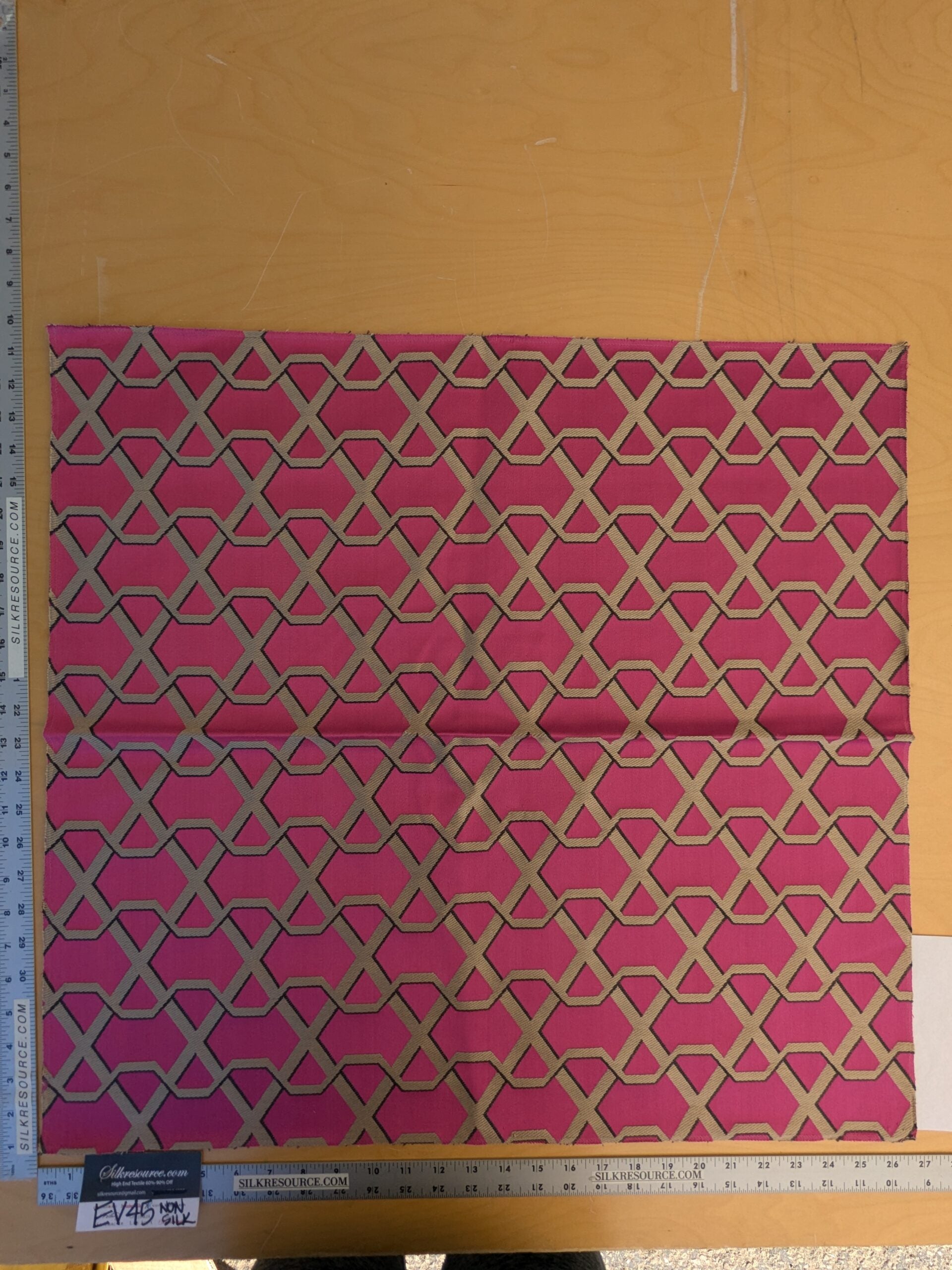 60 EV45 Square Scalamandre Lelievre Ribon Fuschia Pink Beige Jacquard Diamond Ogee Fretwork Lattice Large Jacquard MSRP USD 300+/y