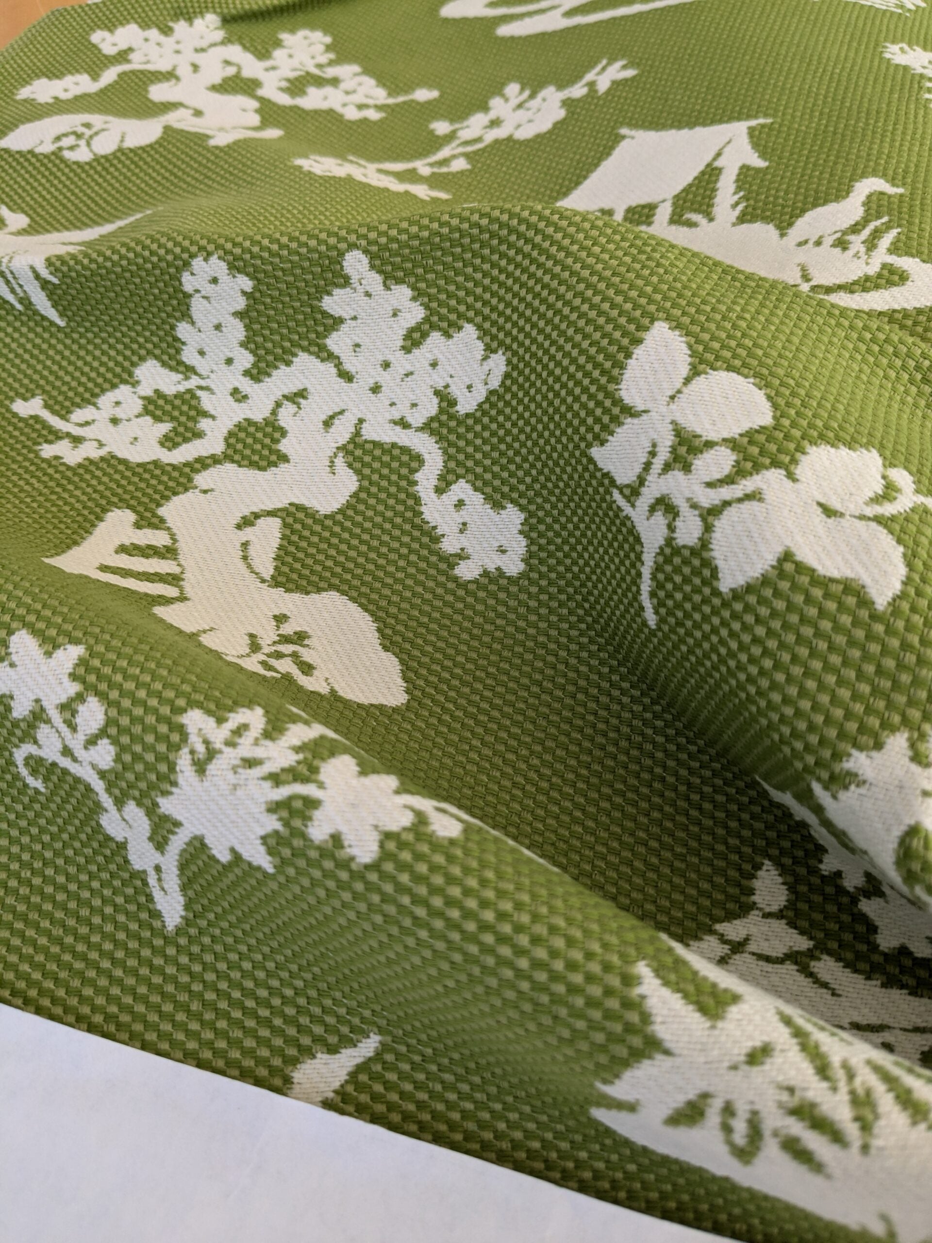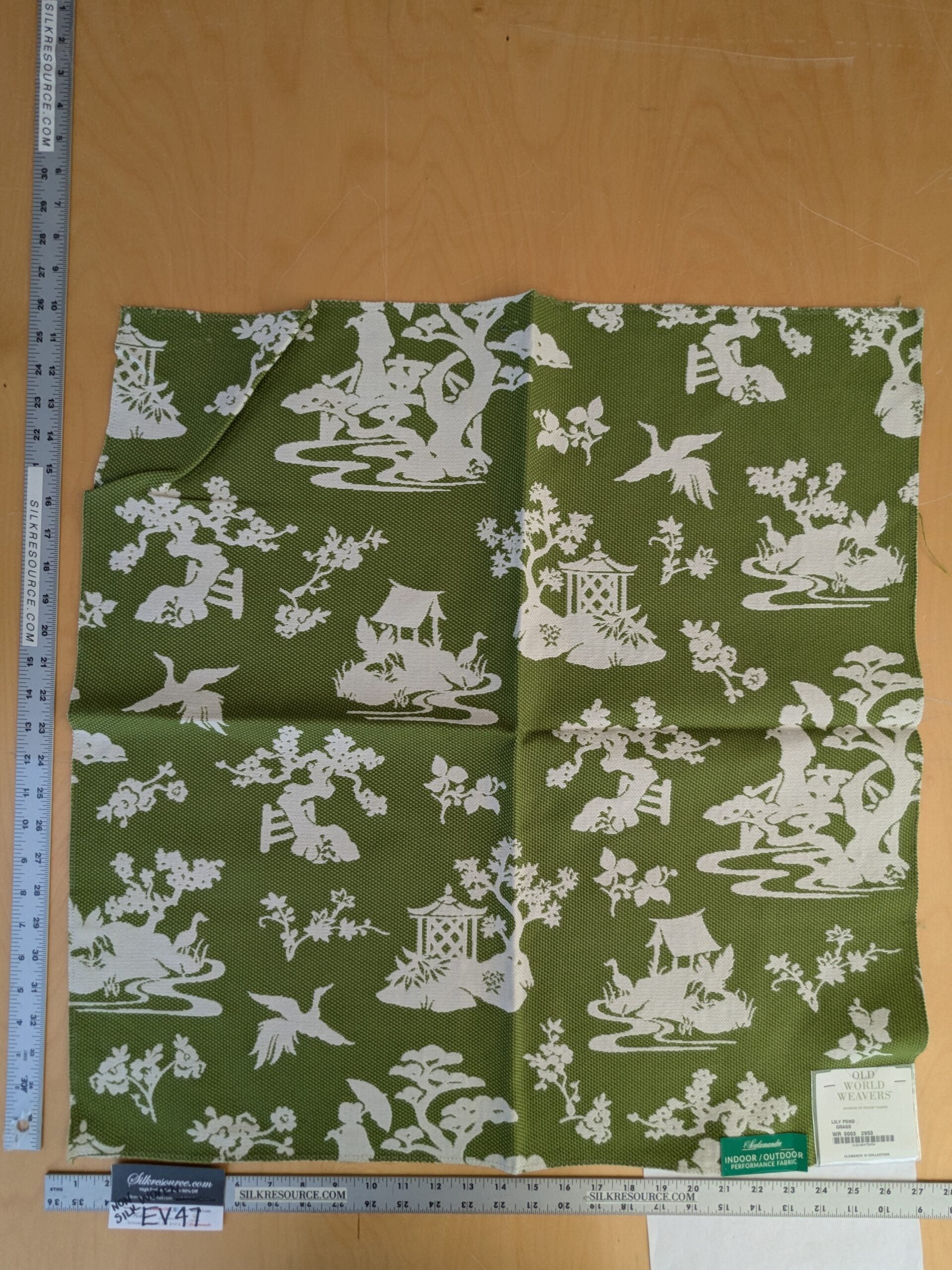 61 EV47 Square Scalamandre LILY POND Grass Green and White Outdoors Bird/ Animal Chinoiserie