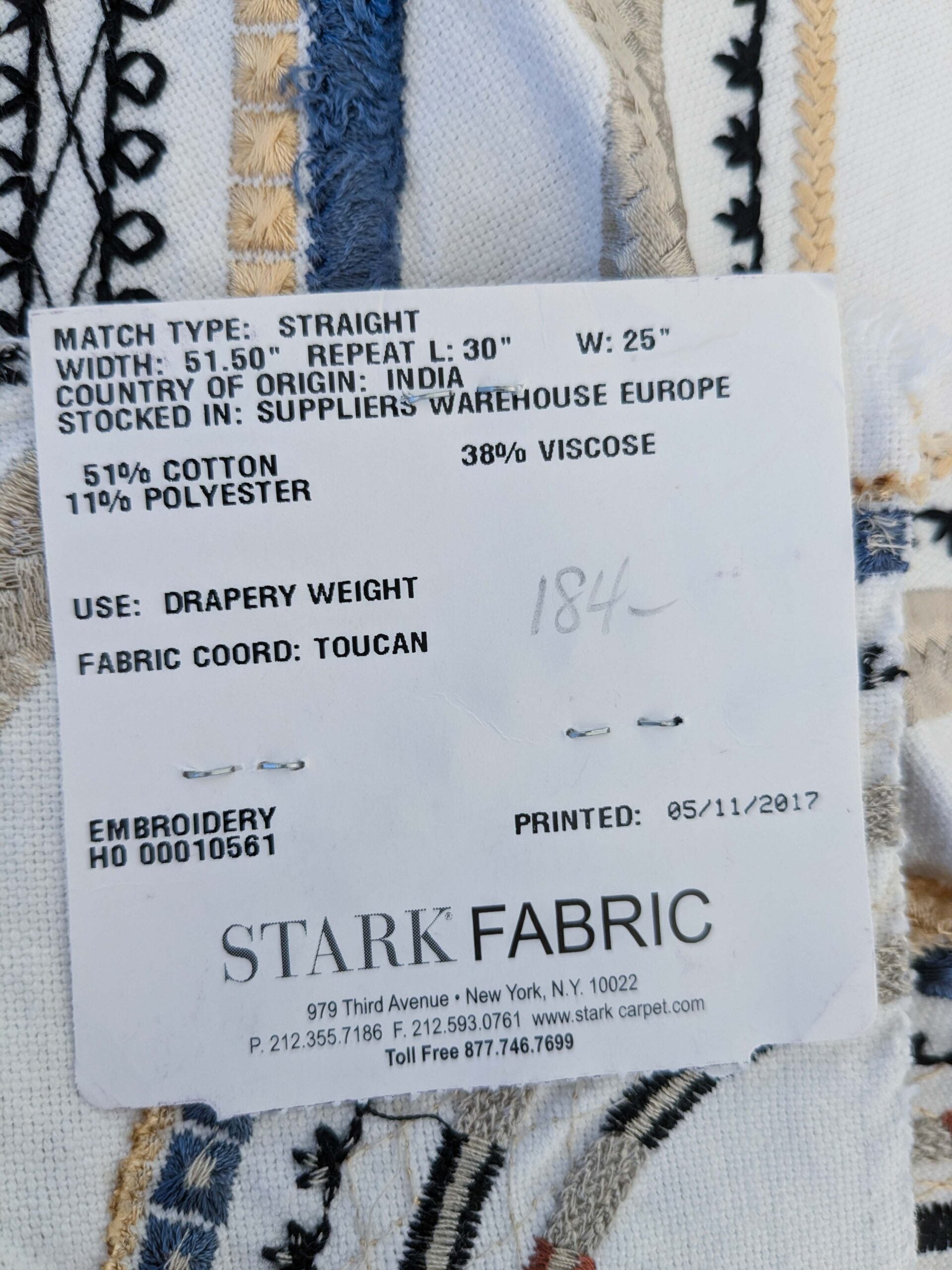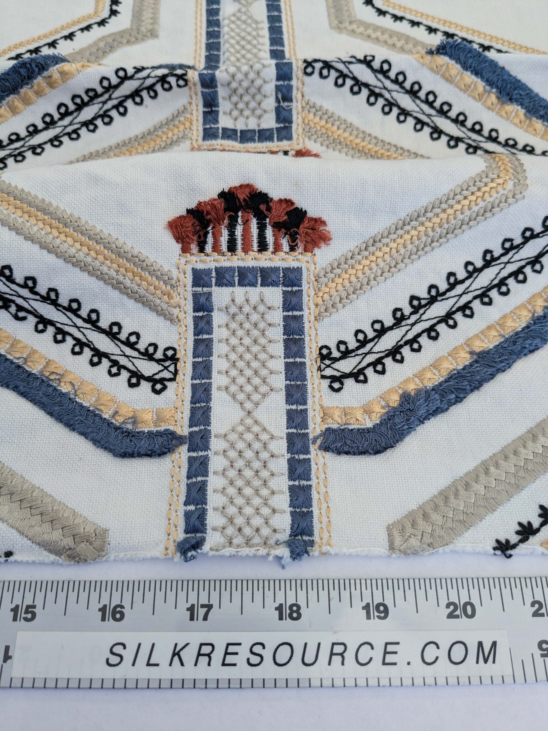 60 EV50 36" x 24" Scalamandre Lelievre Paris Kayapo Anthique Yellow Blue on Cream White Embroidery Geometric Graphic MSRP USD 826/y