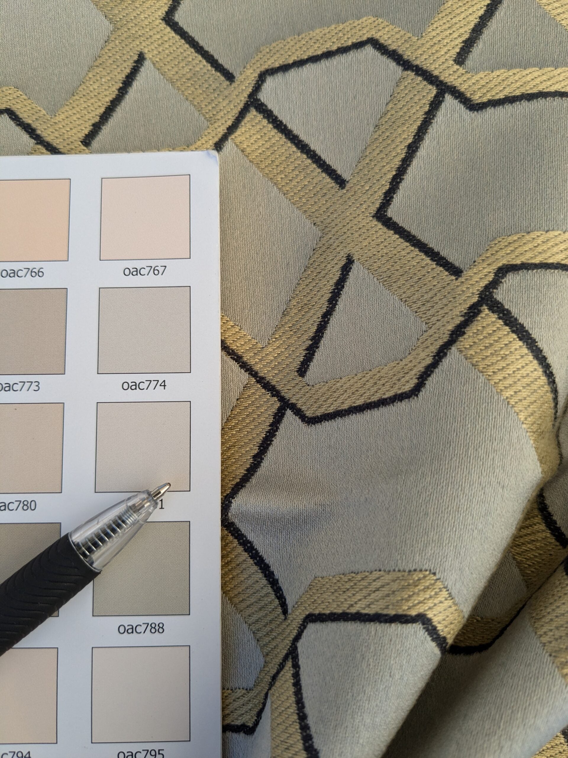 Fiber, repeat, width, weight, country of origin, WHOLESALE price/yard: