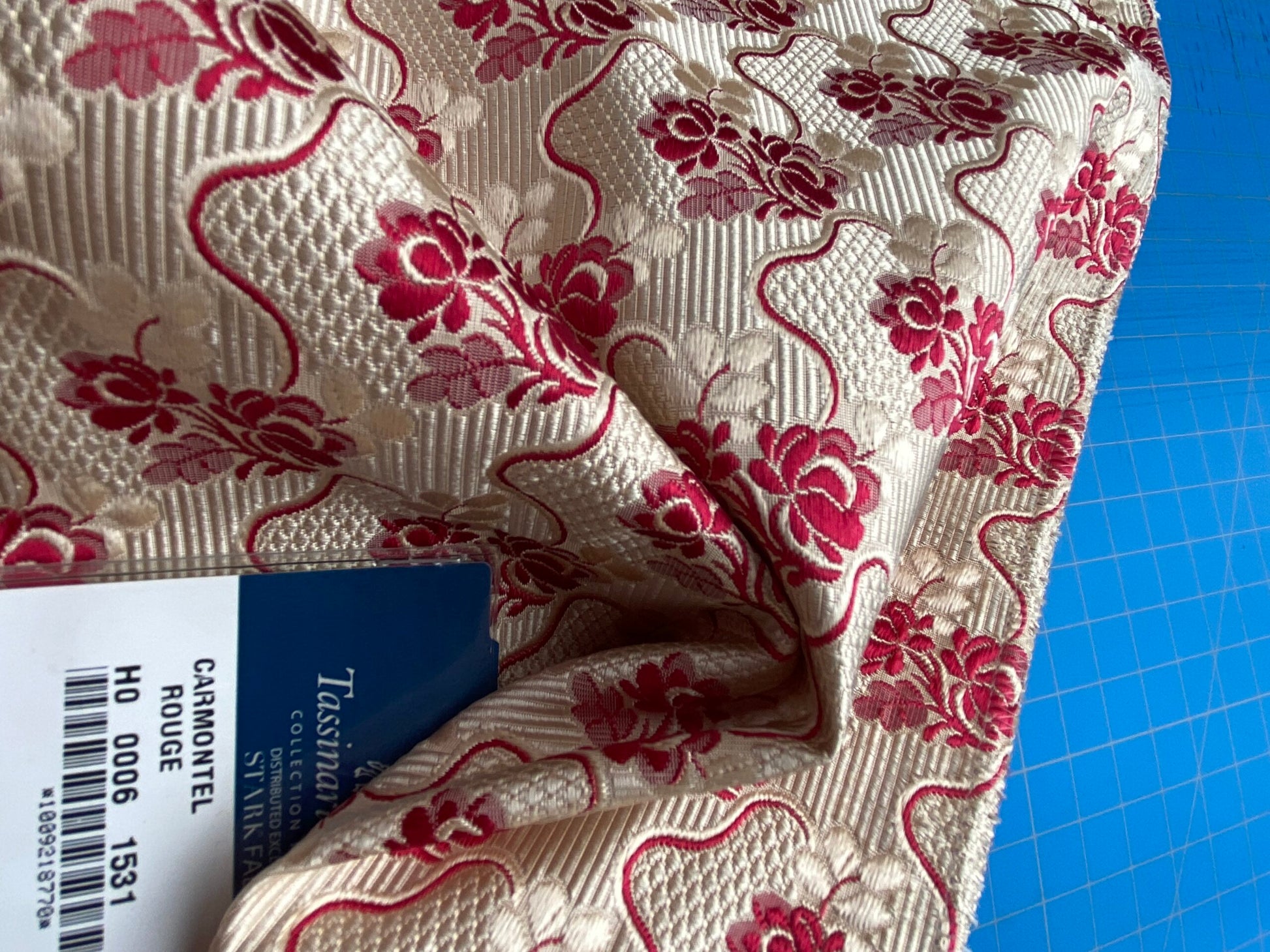 63 Berkbox101 Square Silk by Tassinari and Chatel Carmontel Rouge Red Beige Small Scale Floral Historic MSRP USD704/y