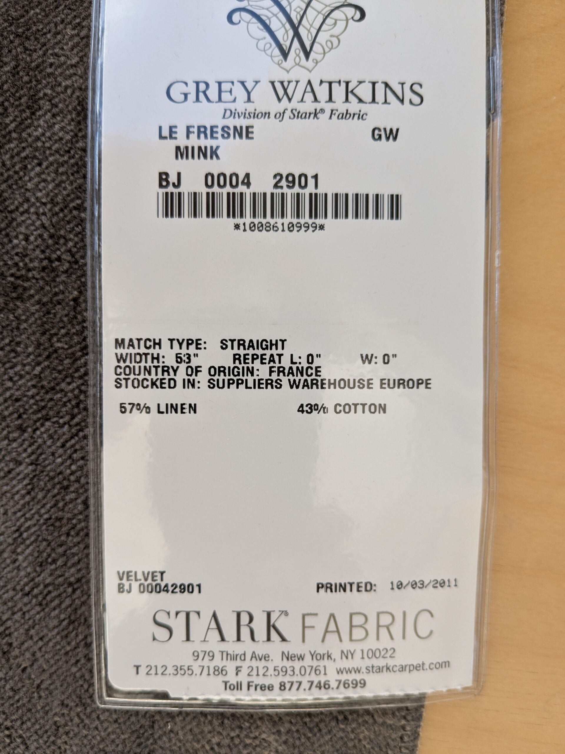 Fiber, repeat, width, weight, country of origin, WHOLESALE price/yard: