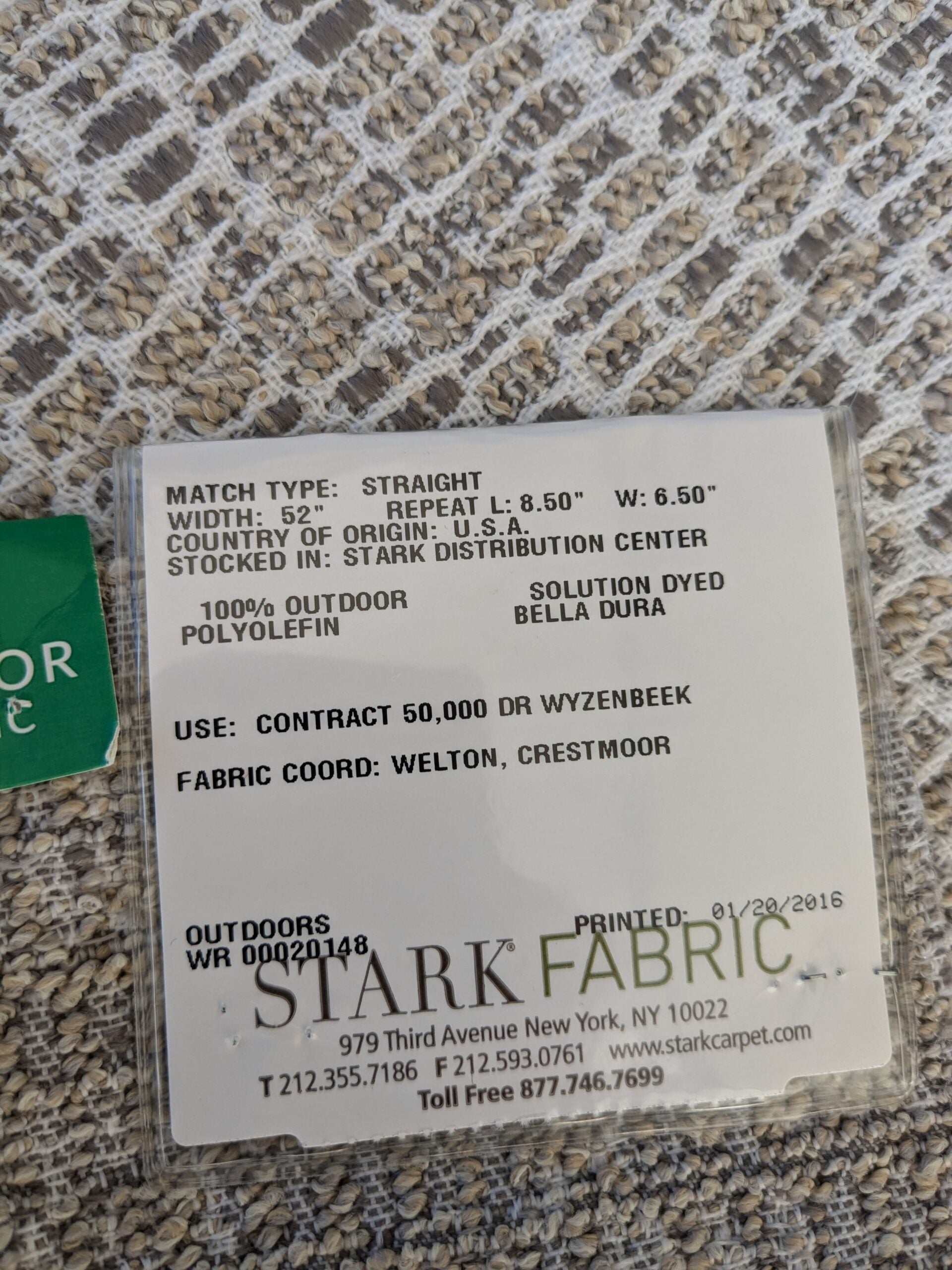 CONTENT: 100% SOLUTION DYED POLYOLEFIN BELLA DURA
