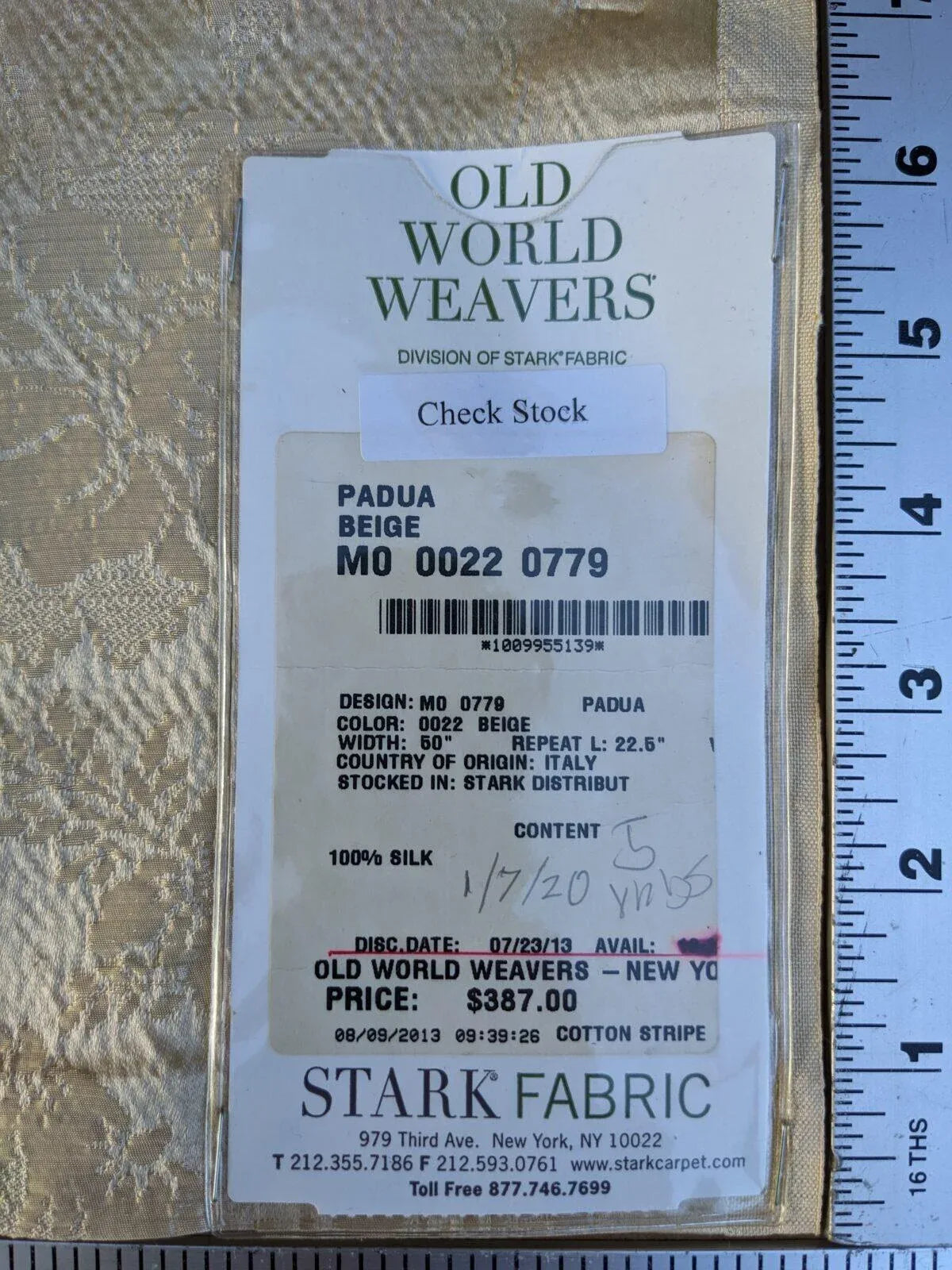 64 Ev11 Scalamandre Showroom Sample 21"x25" Padua Beige 100% Silk Floral MSRP USD 387/Y Minor Defect