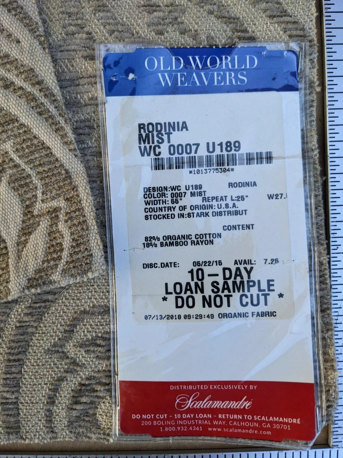 65 Ev11 Scalamandre Showroom Sample 17"x26" Rodinia Mist Tan Organic Cotton Classic Damask Chenille Old World Weavers MSRP USD 168
