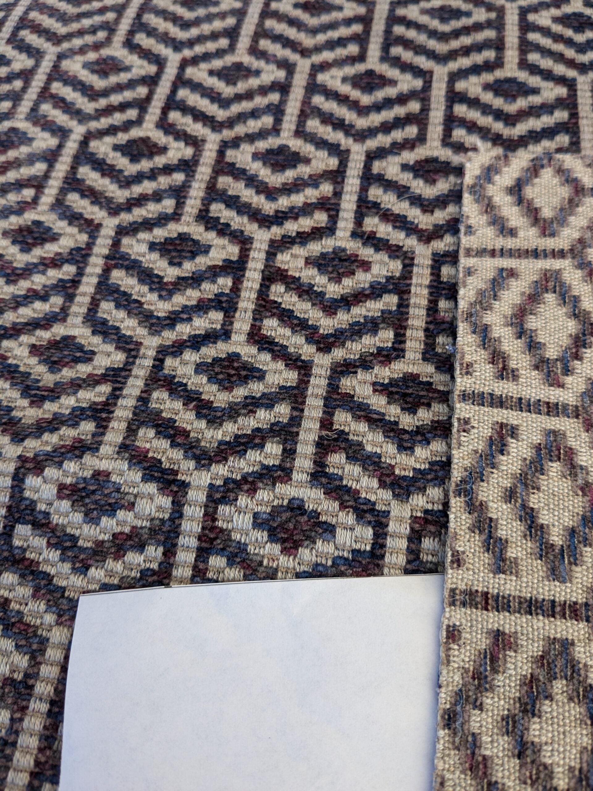 66 EV45 Square Scalamandre Old World Weavers Axial Aubergine Purple White Diamond Ogee Geometric Small Scale MSRP USD 246/y