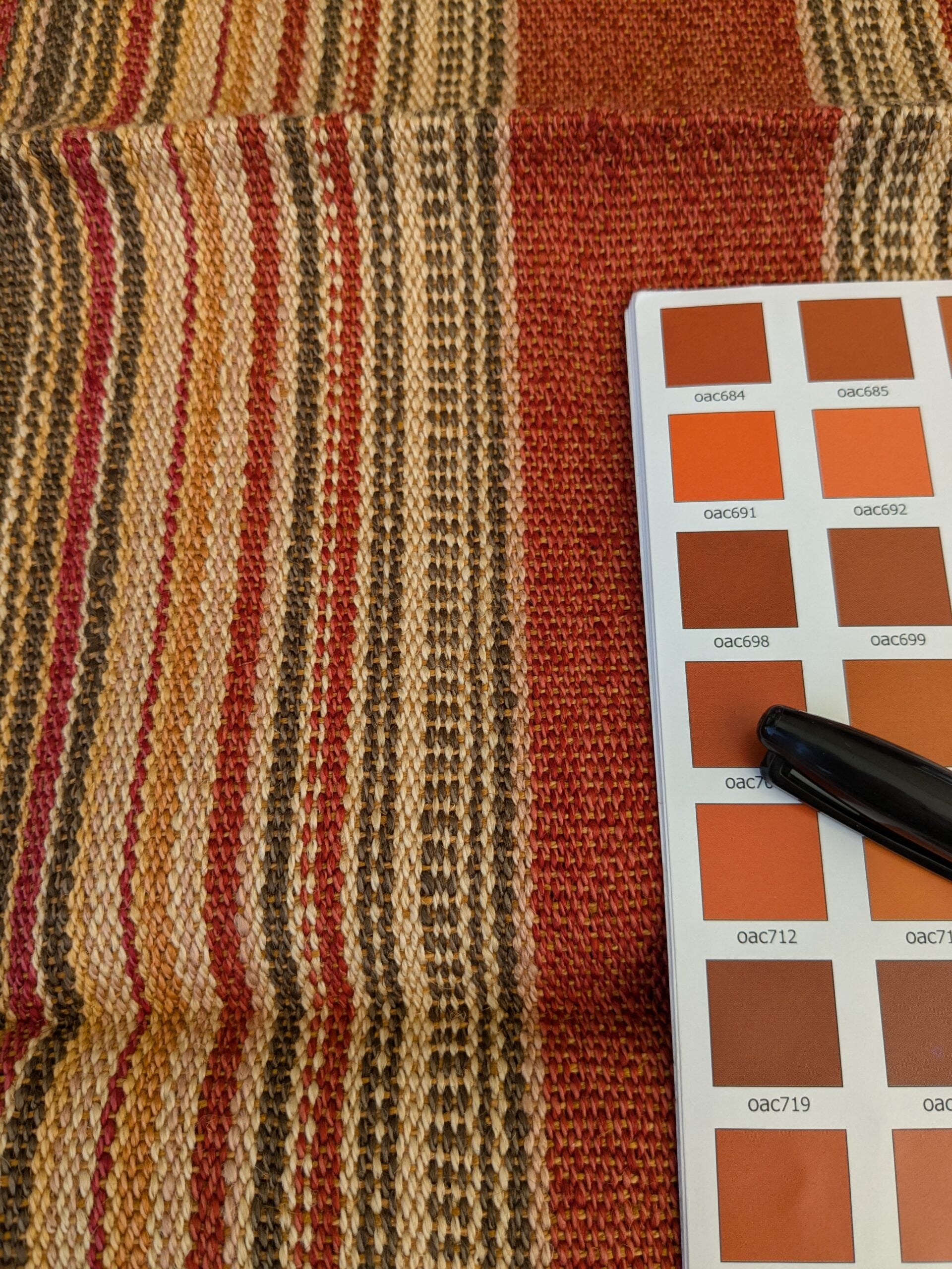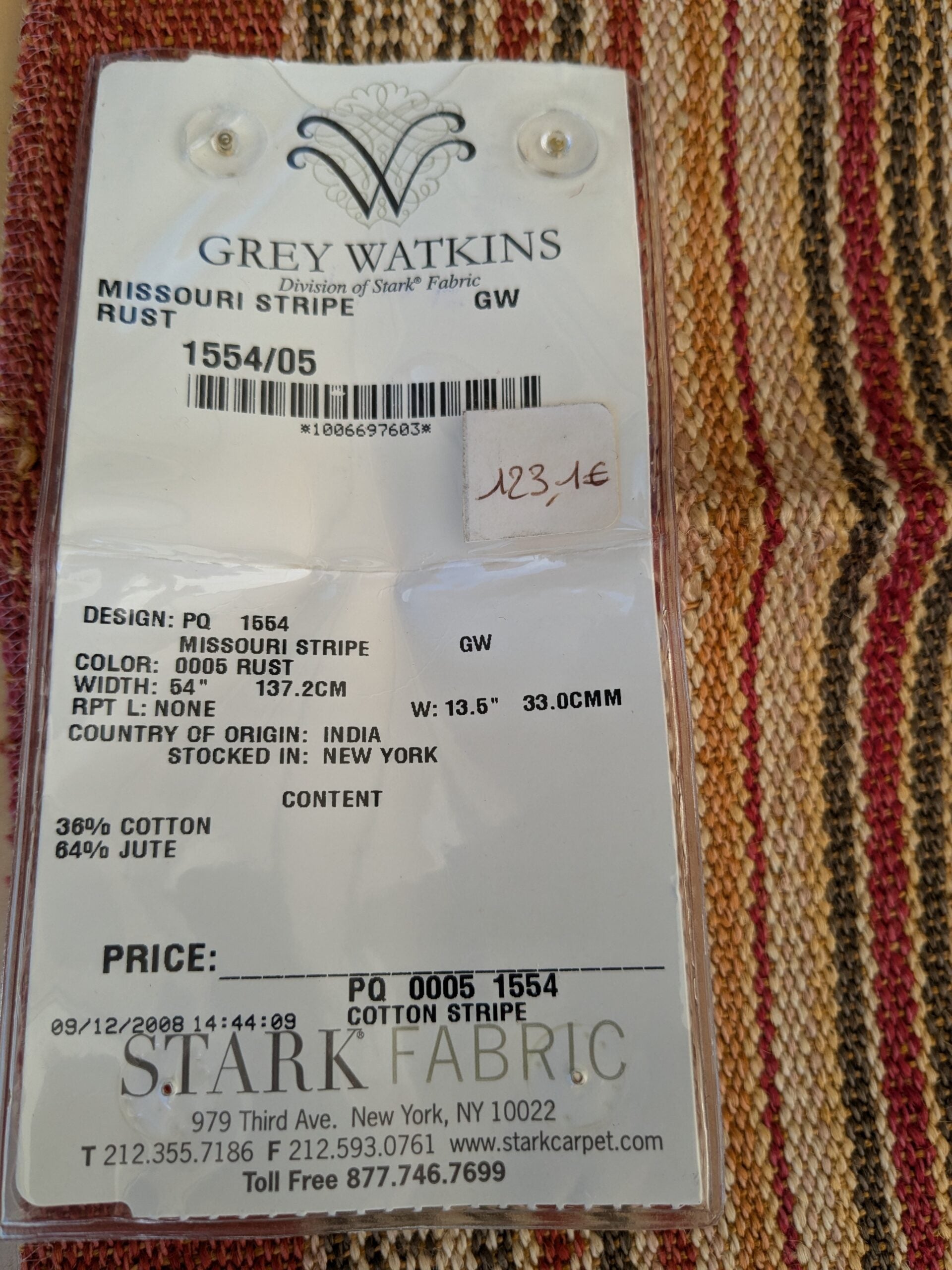 69 EV47 Square Scalamandre Grey Watkins Missouri Stripe Rust Orange Red Brown Jute Cotton