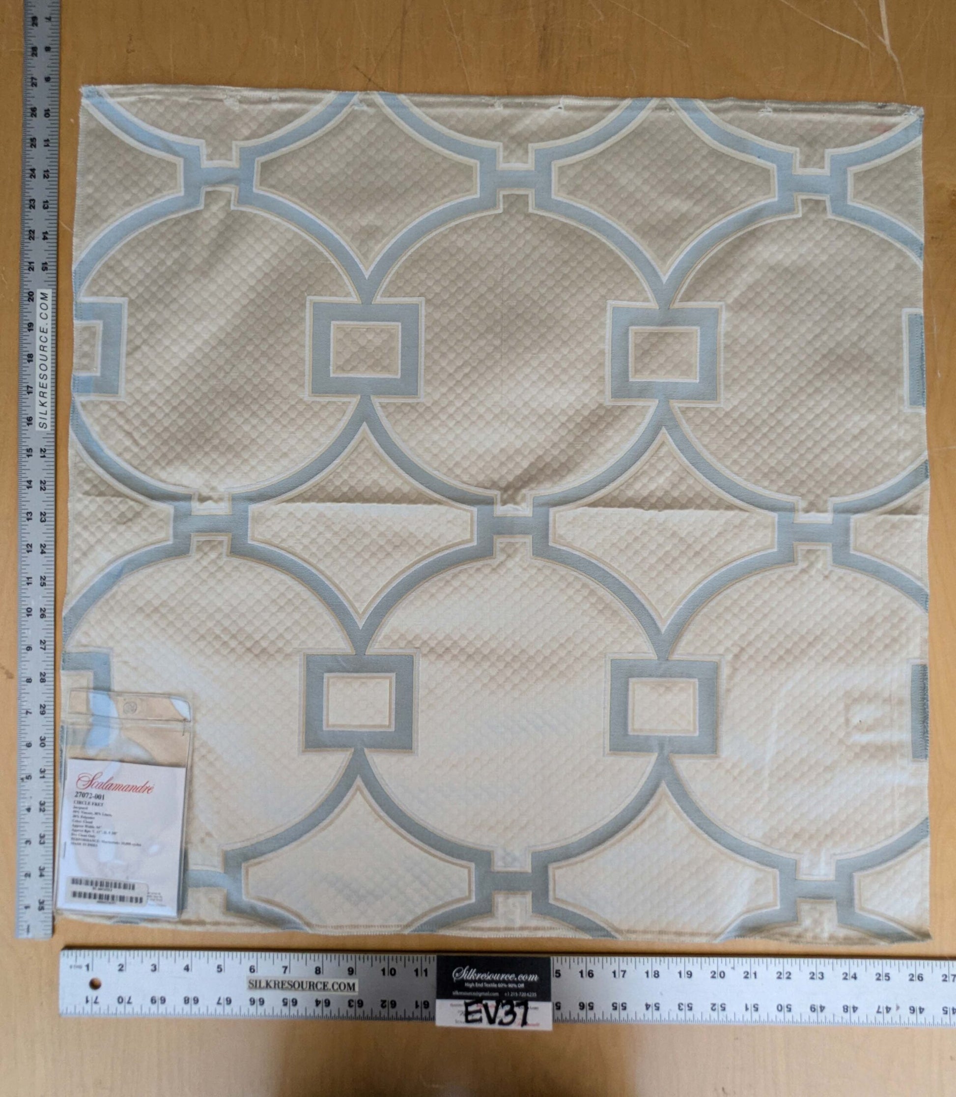69 EV37 26" x 26" Scalamandre Circle Fret Cloud Cream White Blue Jacquard Medallion Geometric Fretwork Lattice MSRP USD 264/y