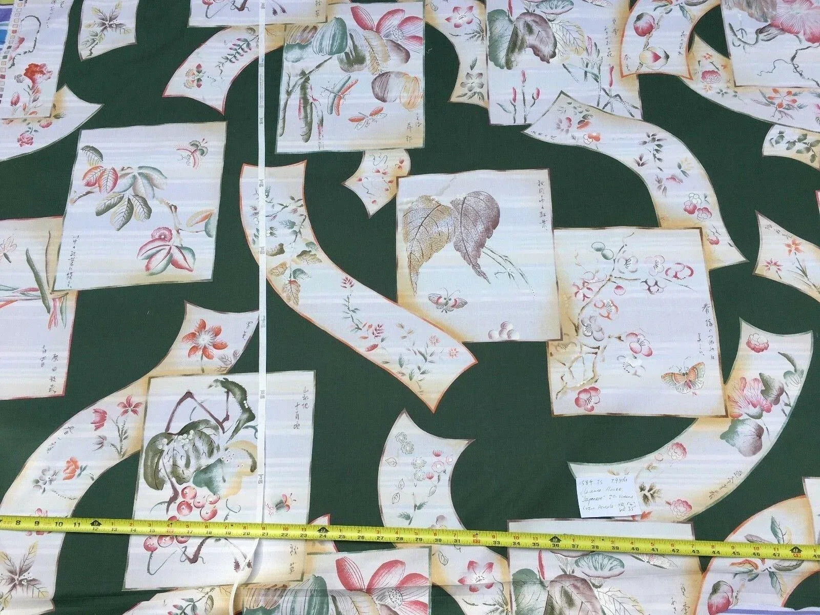 by yard Clarence House Japonerie Hand Print Four Seasons Fruit Vegetables Botanical Asian Painting Fine Art Multi on Deep Green MSRP USD 280/y