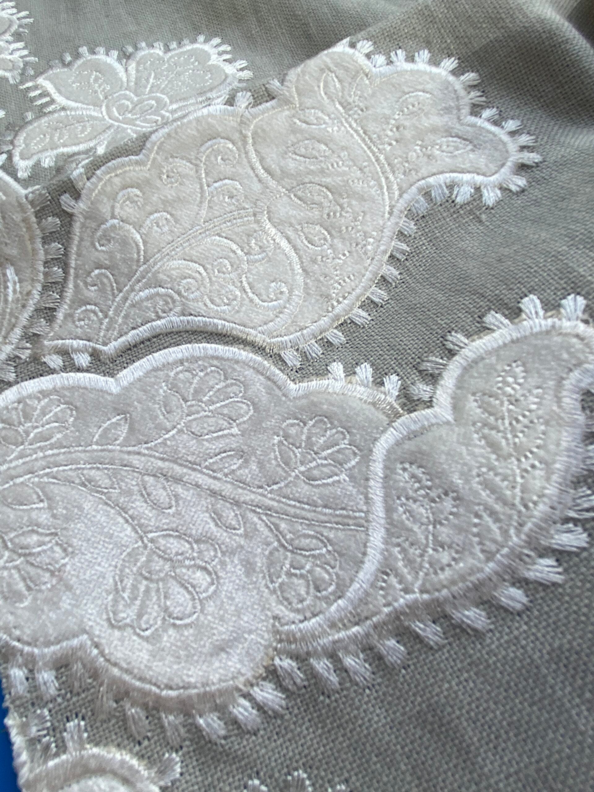7 Berkbox76 Square Embroidery by Scalamandre Cornelia Damask Embroidery Skylight Sheer White MSRP USD 612/y