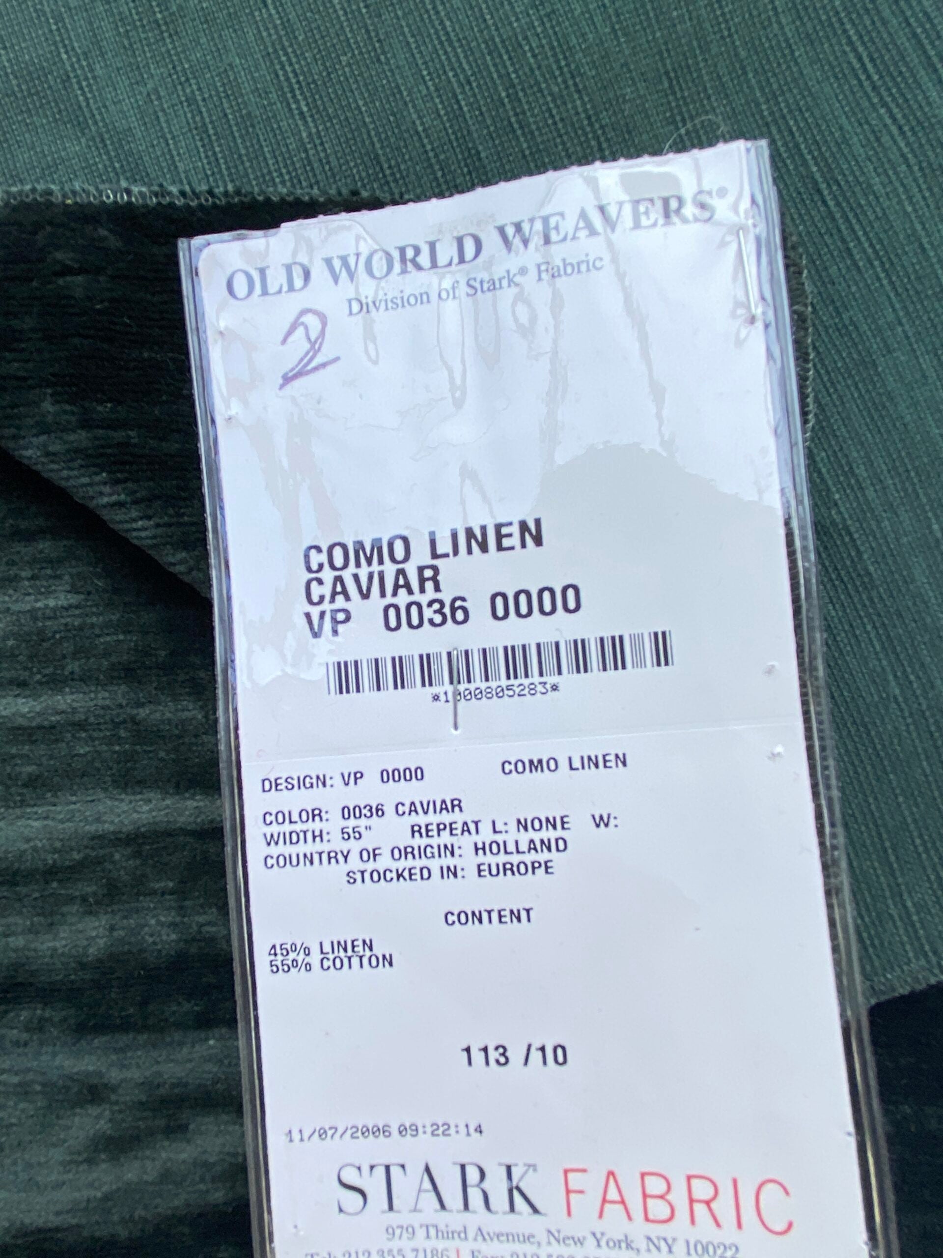 7 Berkbox83 Square Velvet by Old World Weavers Como Linen Caviar Green Texture MSRP USD 354/y