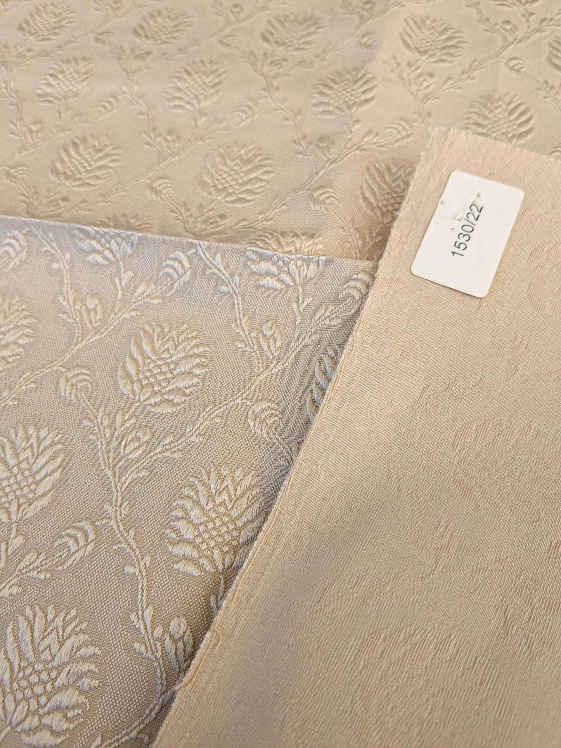 We have given this beautiful Louis XVI design a new lease of life with these new colorways to complement our other luxury collections. A delicate damask woven in the style of an 18th century droguet brought up to date with the addition of some elegant neutral tones and new sophisticated colors. Can be used for decorative chairs in a bedroom or sitting room.
