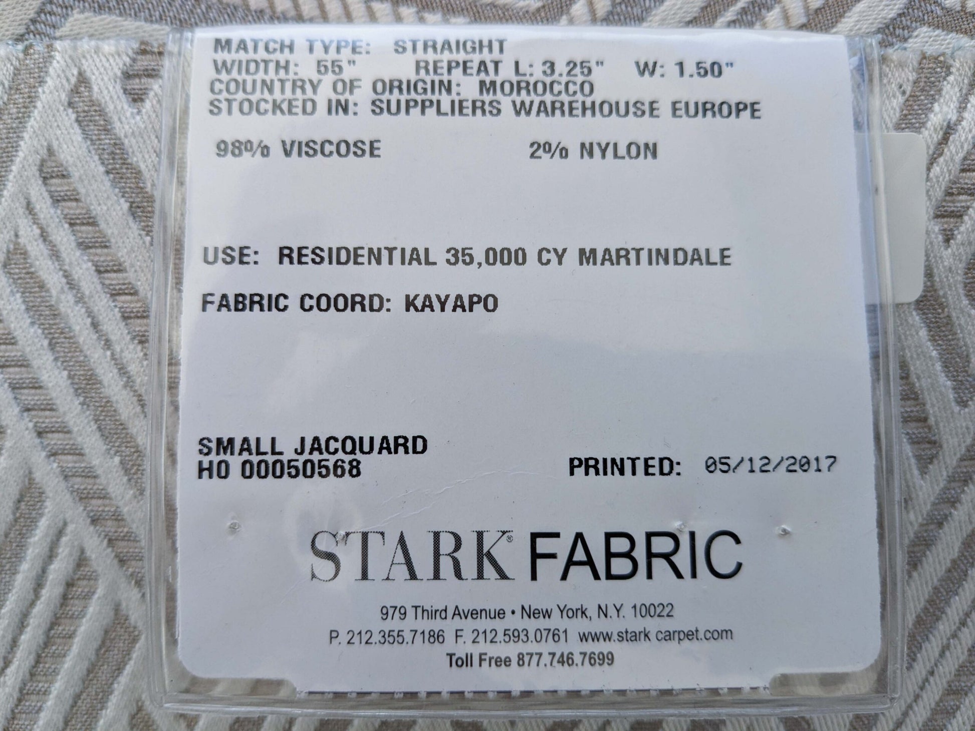 Fiber, repeat, width, weight, country of origin, WHOLESALE price/yard: