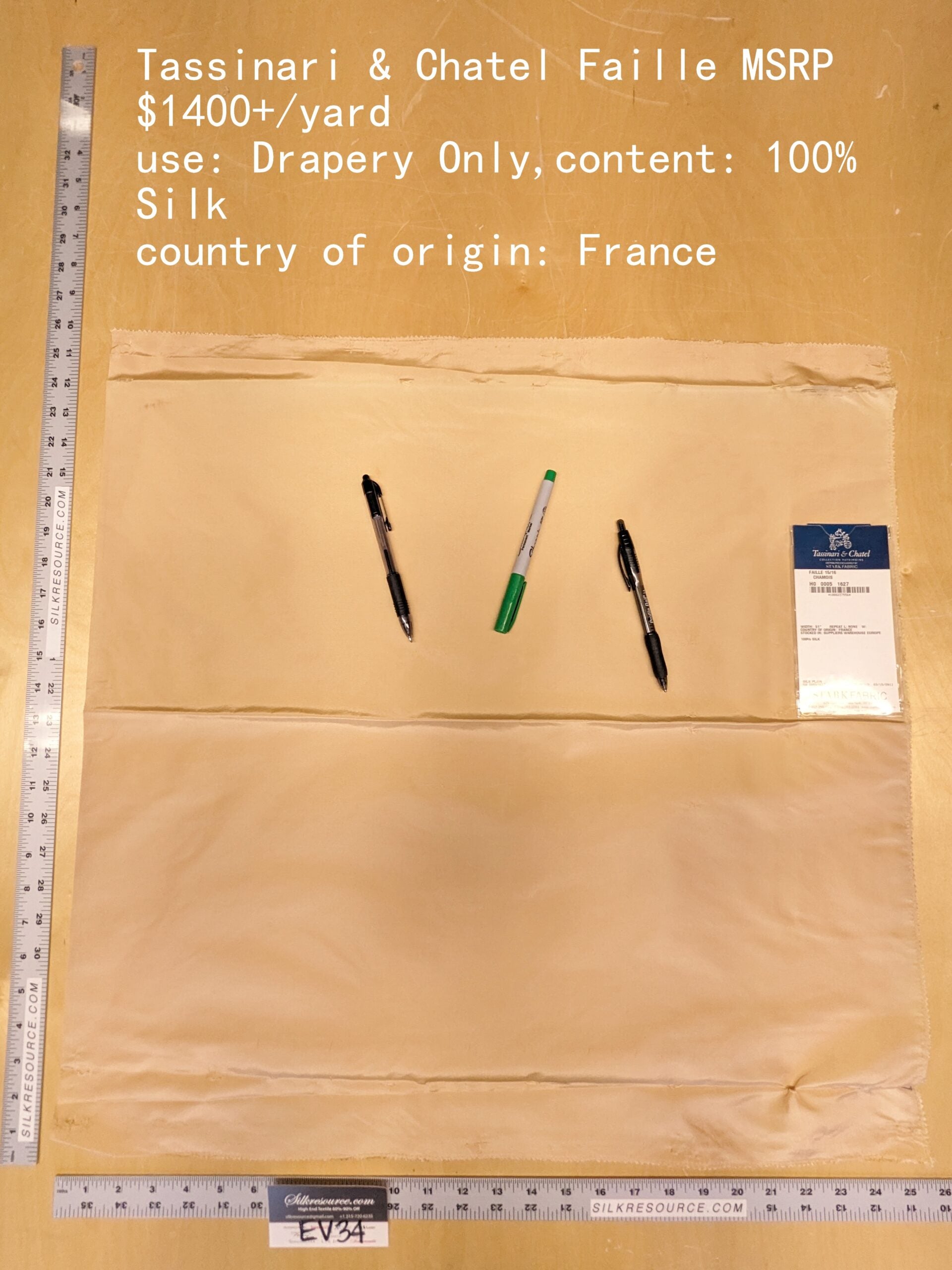 75 EV34 Special Square Plain Fabric by Tassinari and Chatel Faille Chamois Yellow Silk Plain MSRP USD1400+/y