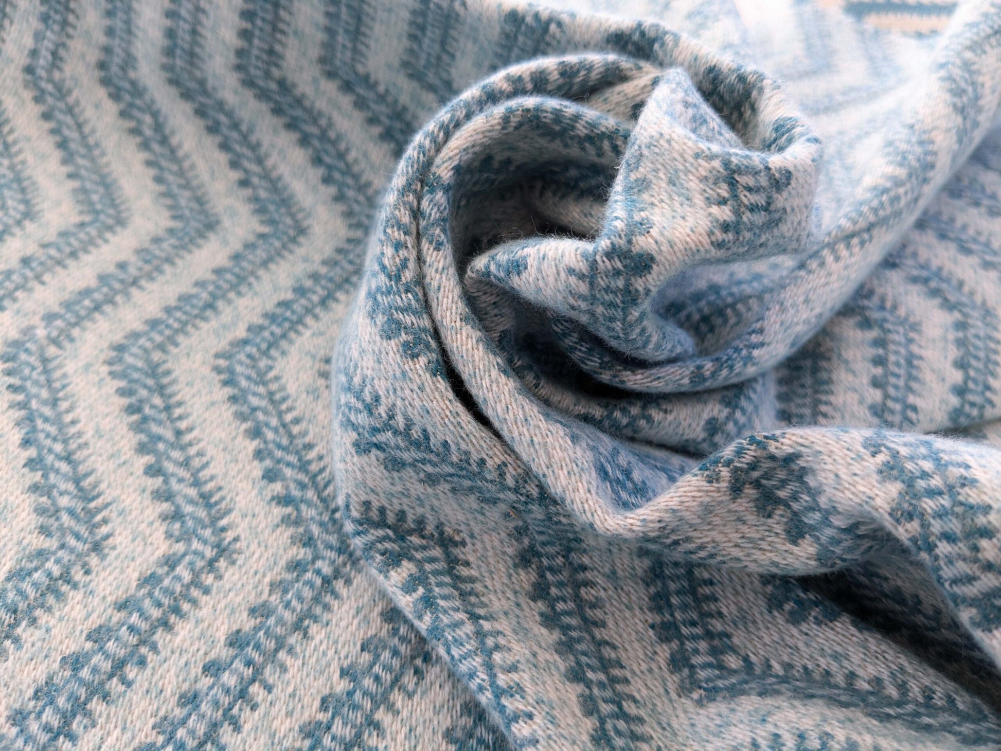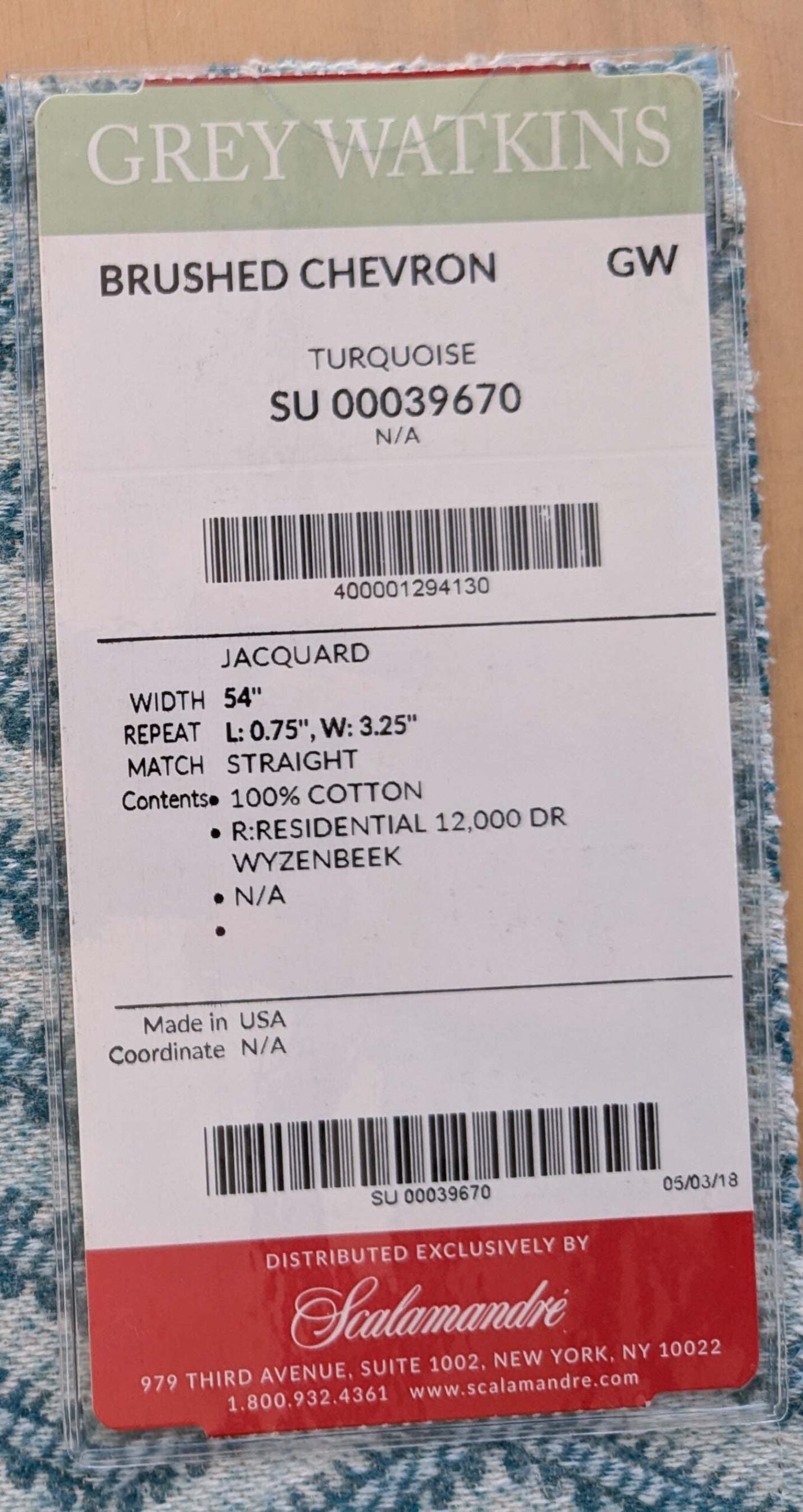 73 EV50 26" x 27"Scalamandre Grey Watkins Brushed Chevron Turquoise Blue Green Cotton Jacquard Herringbone Reversible MSRP USD 188/Y