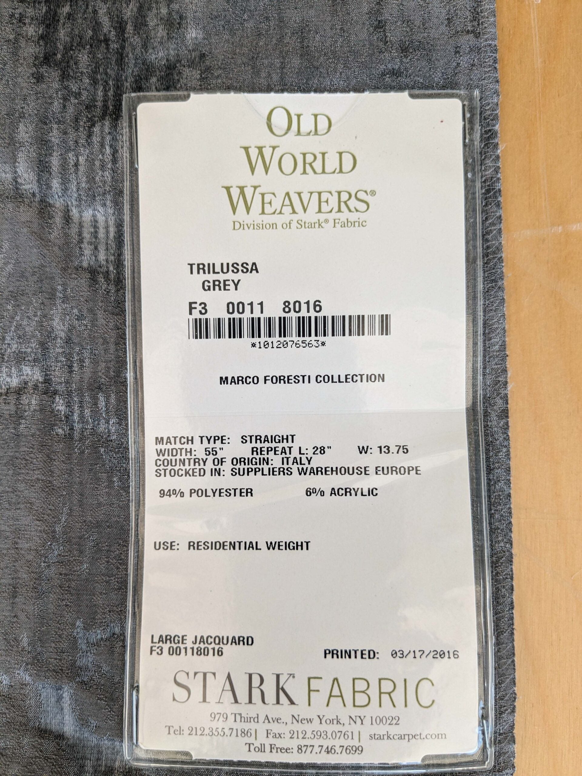 77 EV37 26" x 27" Old World Weavers Trilussa Grey Abstract Large Jacquard