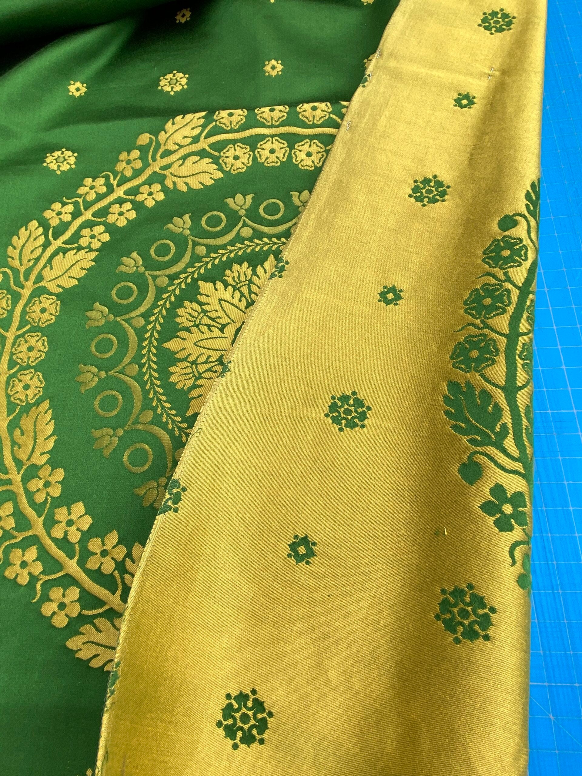 Reproduction of neoclassic silk lampas. Used in Palace and White House.