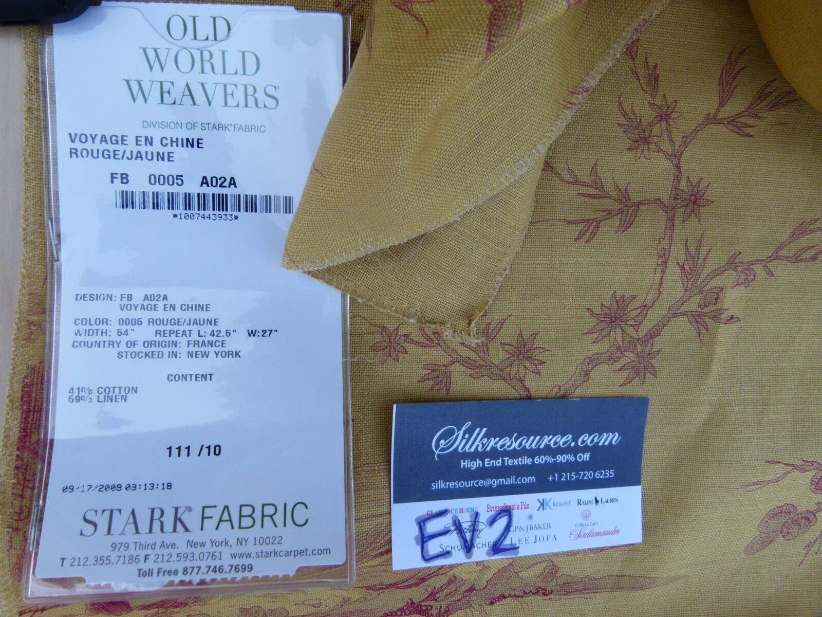 Fiber, repeat, width, weight, country of origin, WHOLESALE price/yard: