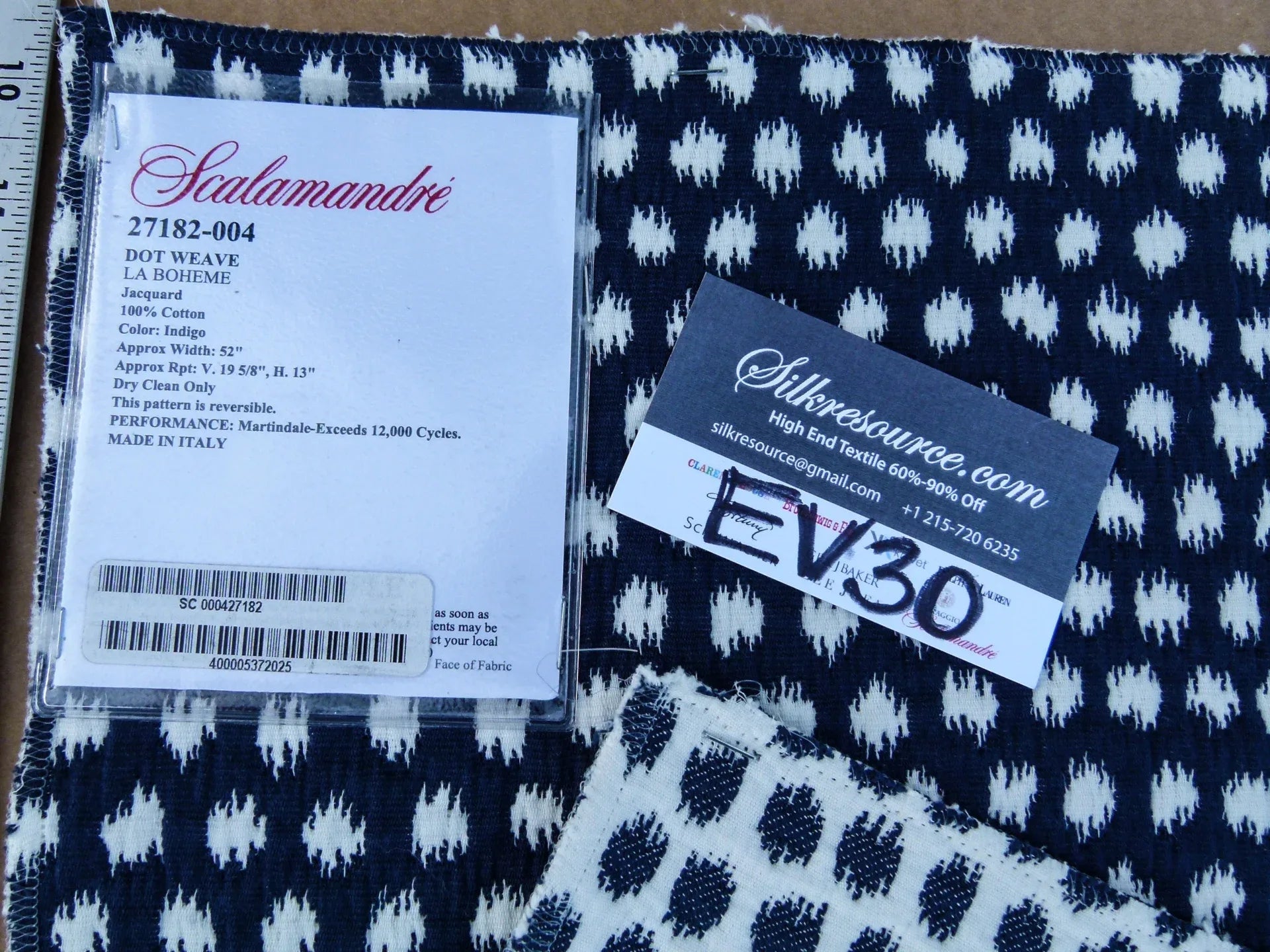 8 EV30 Scalamandre Dot Weave Indigo La Boheme Collection Ikat Small Scale Jacquard Cotton 25 x 26 inches MSRP USD298/y