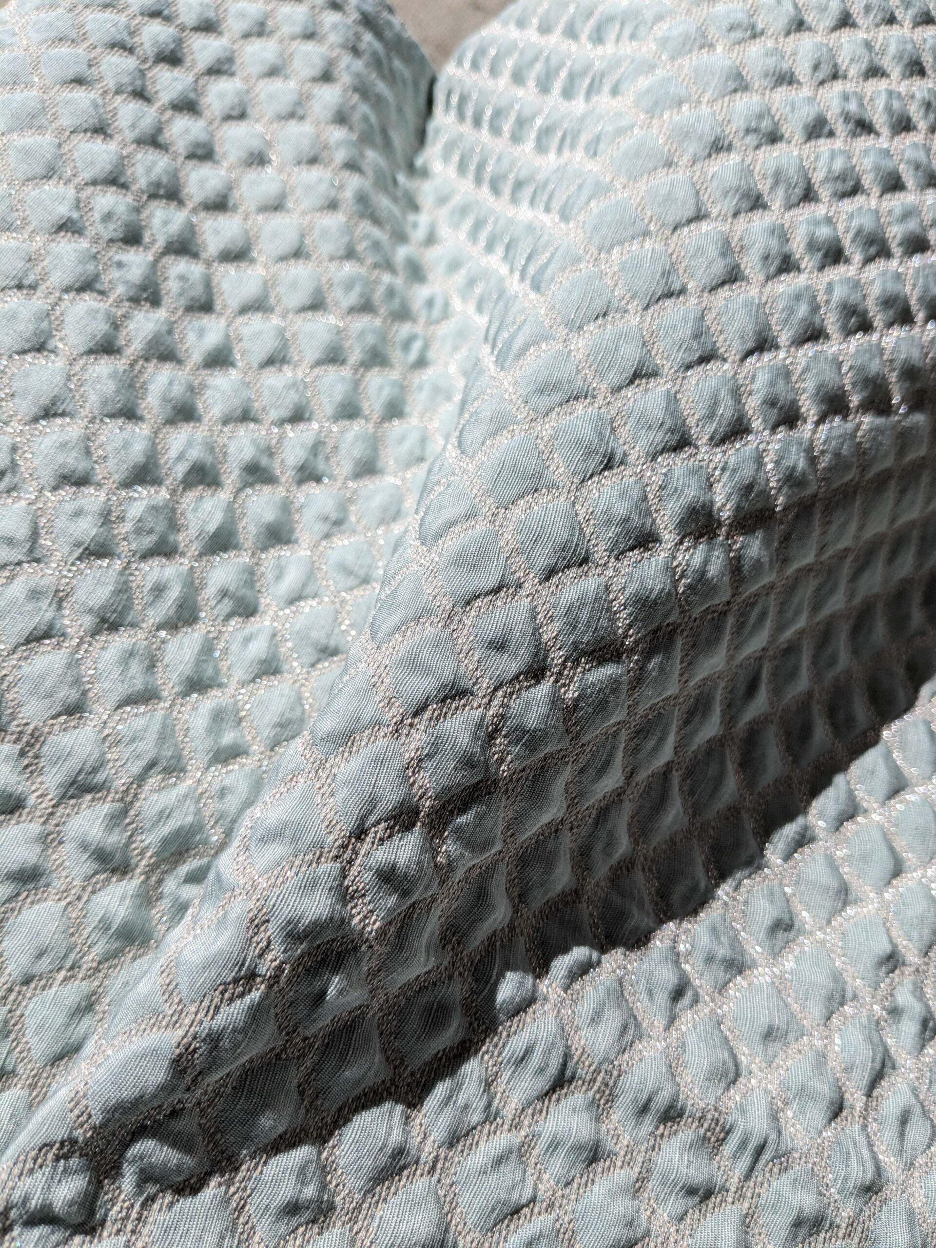 9 EV40 2.4y x 53"W Scalamandre Scallop Weave Mineral Light Blue Jacquard Diamond Ogee Small Scale MSRP USD 228/y